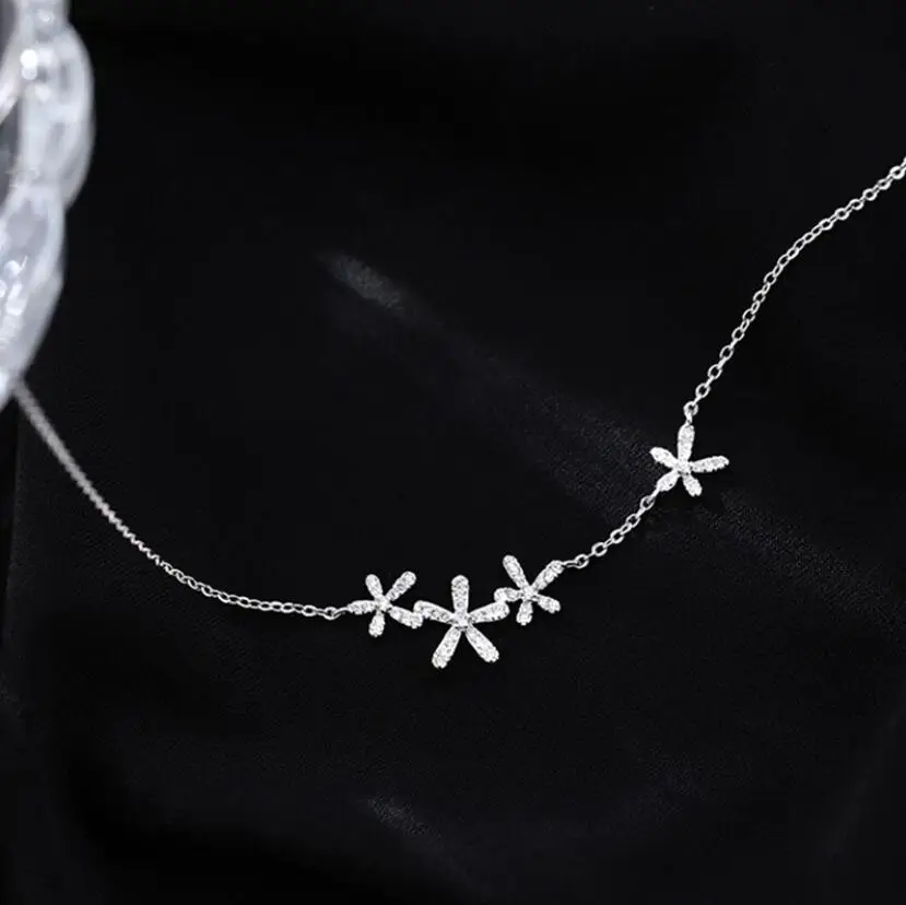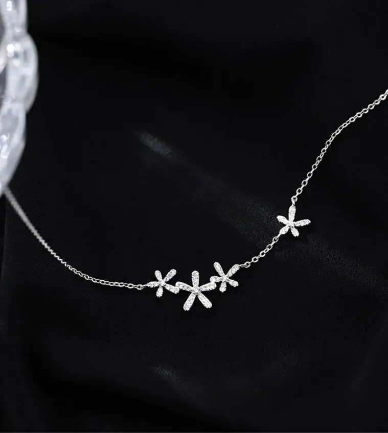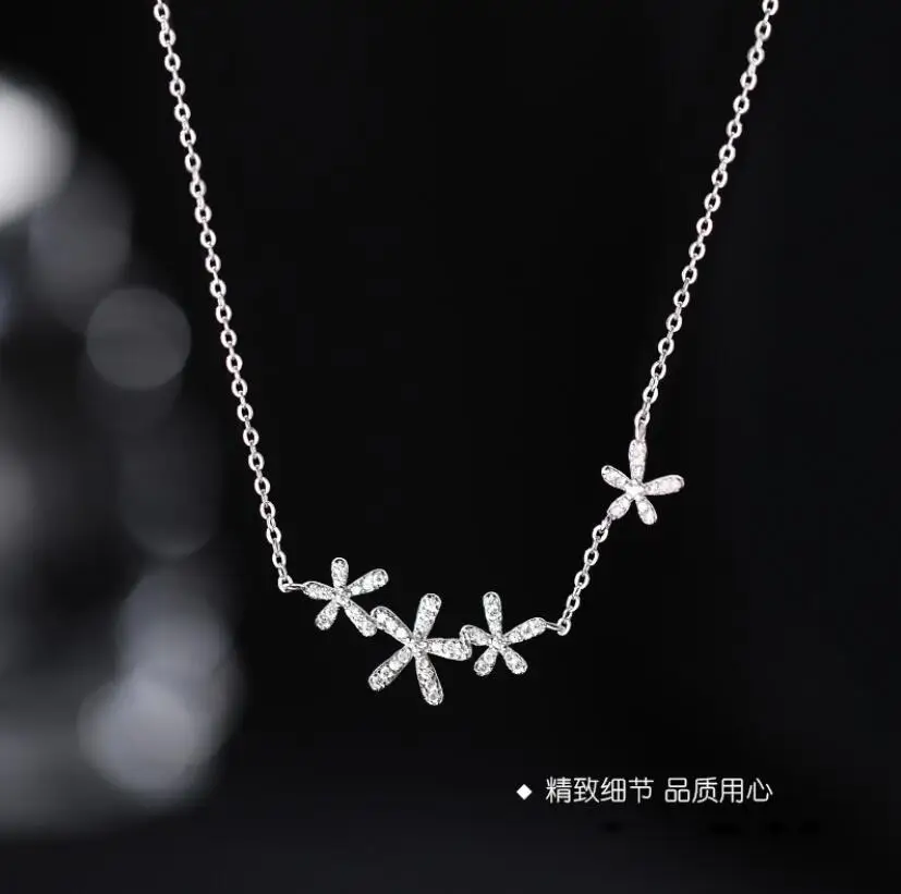Ожерелье из серебра 925 пробы с цветком вишни, цепочка до ключиц, новинка 2021, модная нишевая дизайнерская блестящая Цветочная бижутерия для свадебной вечеринки, подарок