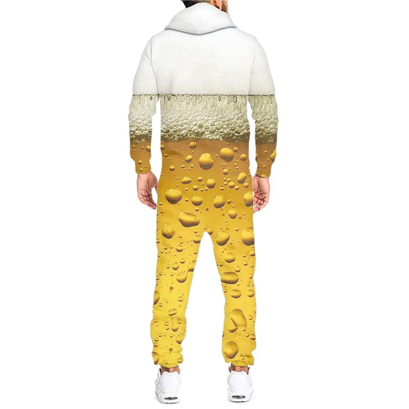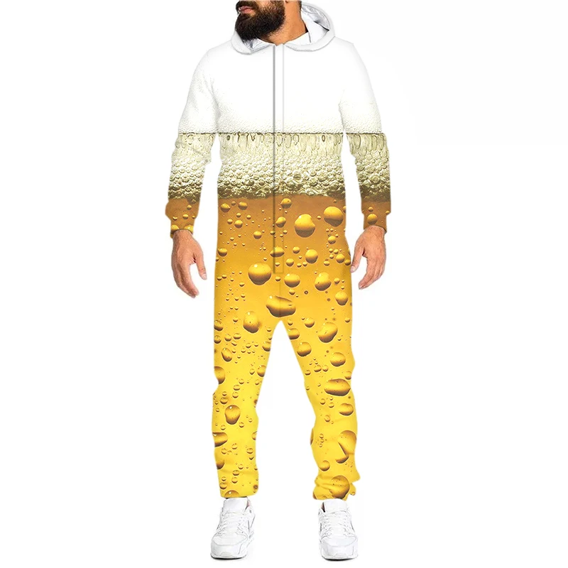 Пивные Комбинезоны для вечерние, мужская одежда большого размера, цельный комбинезон на молнии с капюшоном, пижама с длинным рукавом, комбинезон в уличном стиле, Прямая поставка