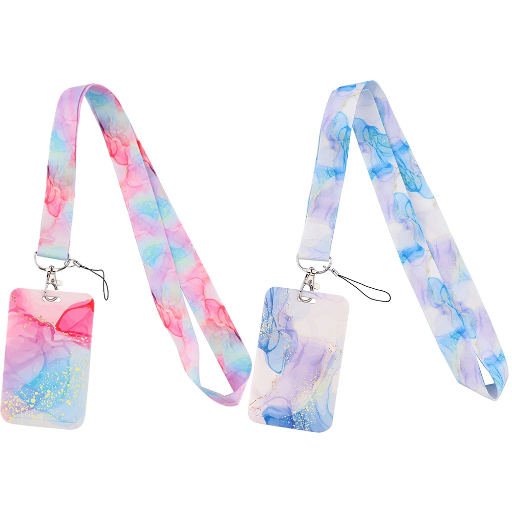 Рисунок с розовым, голубым мраморным узором, на шнурке, для кредитных карт