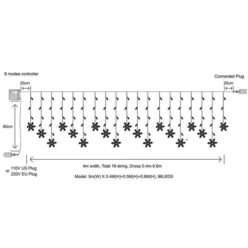 Рождественская светодиодная гирлянда в виде снежинок для помещений и улицы, сказочные огни, гирлянда-занавеска, гирлянда для праздника, вечеринки, Новогоднее украшение