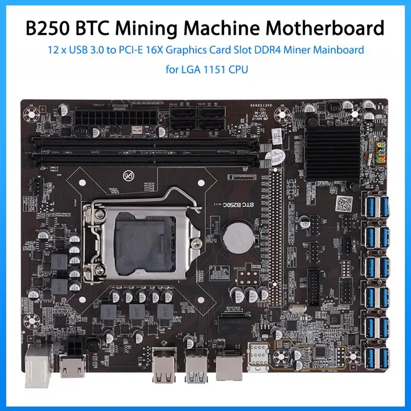 Материнская плата B250C для майнера BTC, 12 USB 3,0 к PCI-E X1, гра...
