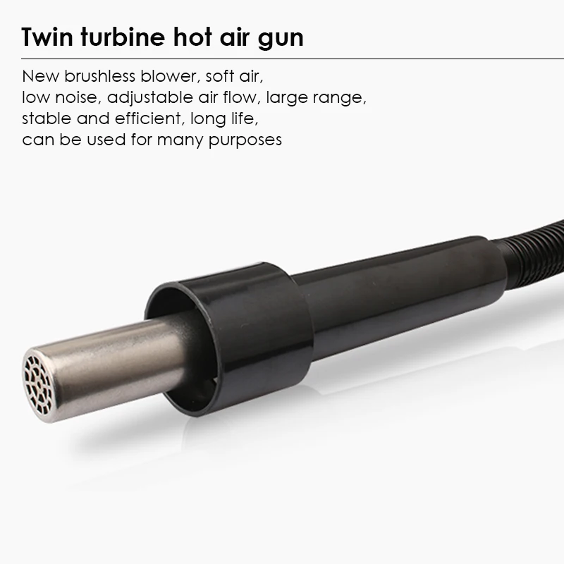 Особенности:Датчик замкнутой петли:Температура может регулироваться в режиме нулевой нагрузки.Большая мощность и Быстрое нагревание:Температура может быть удобно отрегулирована, а температура является точной и надежной и не зависит от воздушного потока.Бесступенчатая Регулировка воздушного потока с широким диапазоном:Температуру можно удобно регулировать.Чувствительный электромагнитный индуктор в ручке:Обеспечивает немедленную работу устройства до тех пор, пока рукоятка удерживается. Когда ручка будет установлена на держателе, система вернется в режим ожидания. Простых в использовании.Автоматическая система охлаждения:Может увеличить срок службы нагревательного элемента и защитить устройство.Компактный блок занимает мало места на верстаке.Применение:Подходит для большинства SMD, таких как SOIC,CHIP,QFP,PLCC,BAG и т. д.Он пригоден для термоусадочной обработки, сушки, удаления лака и слизи, оттепели, подогрева, дезинфекции и т. д.Спецификация:Потребляемая мощность: 580 Вт с четырьмя круглыми воздушными насадкамиНасос: двигатель постоянного тока, двойной турбо вращается от ветра.Регулировка температуры: 100-480 ℃Расход газа: 100 л/минДиаметр сопла: 3 мм 6 мм 8 мм 12 ммДлина мобильных компонентов: 110 смРазмеры: 17 см (H) x 10,5 (Ш) х 24 см (D)Вес: 2400 гШум: менее 78 дБНапряжение: 220 В