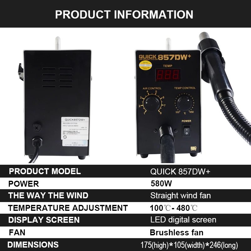 1 x быстрая 857DW + Регулируемая станция горячего воздуха4 насадки