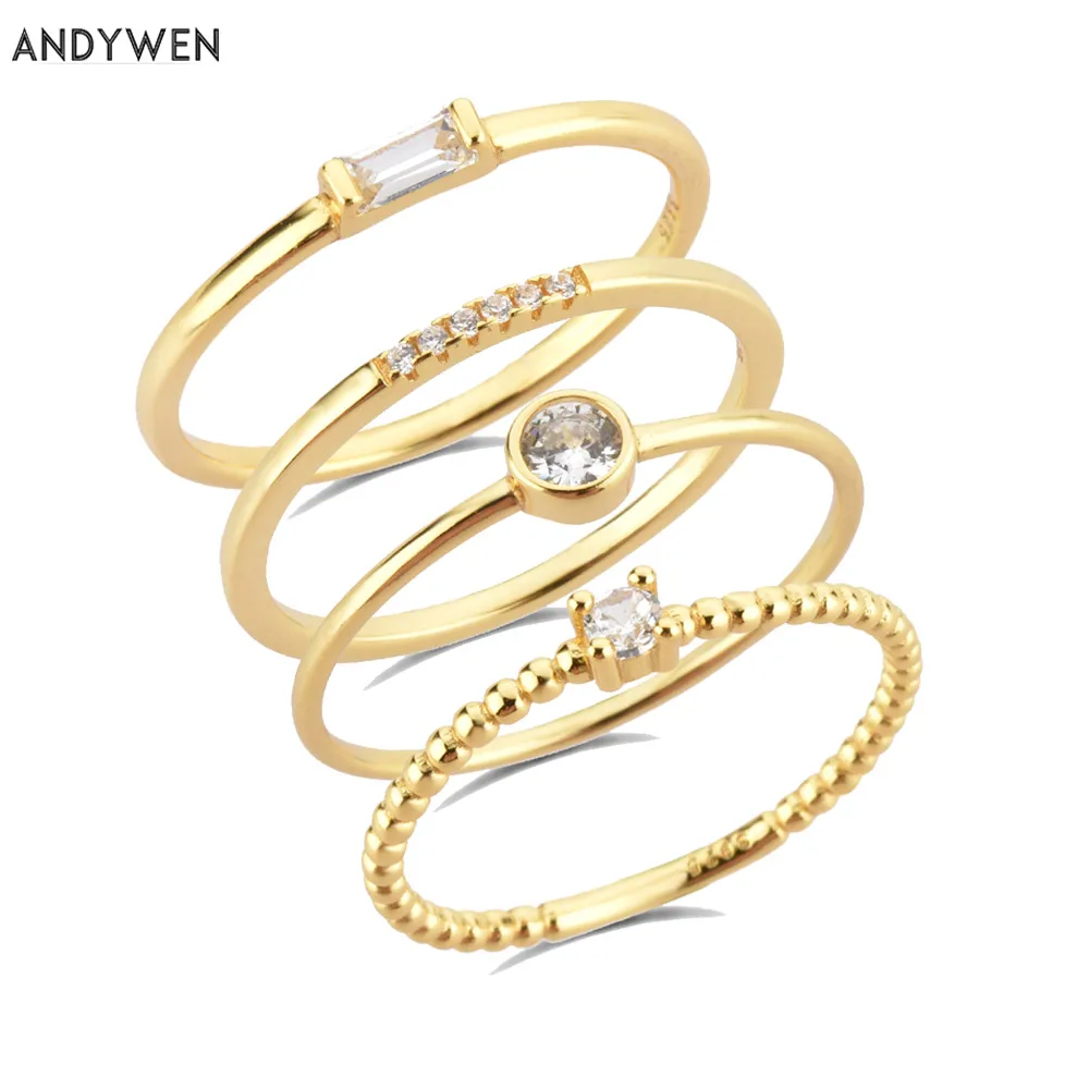 Женские Классические свадебные кольца ANDYWEN, кольца из стерлингов...