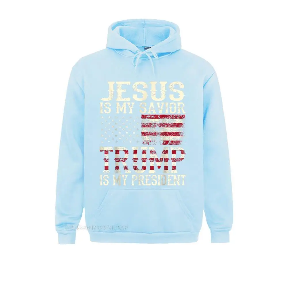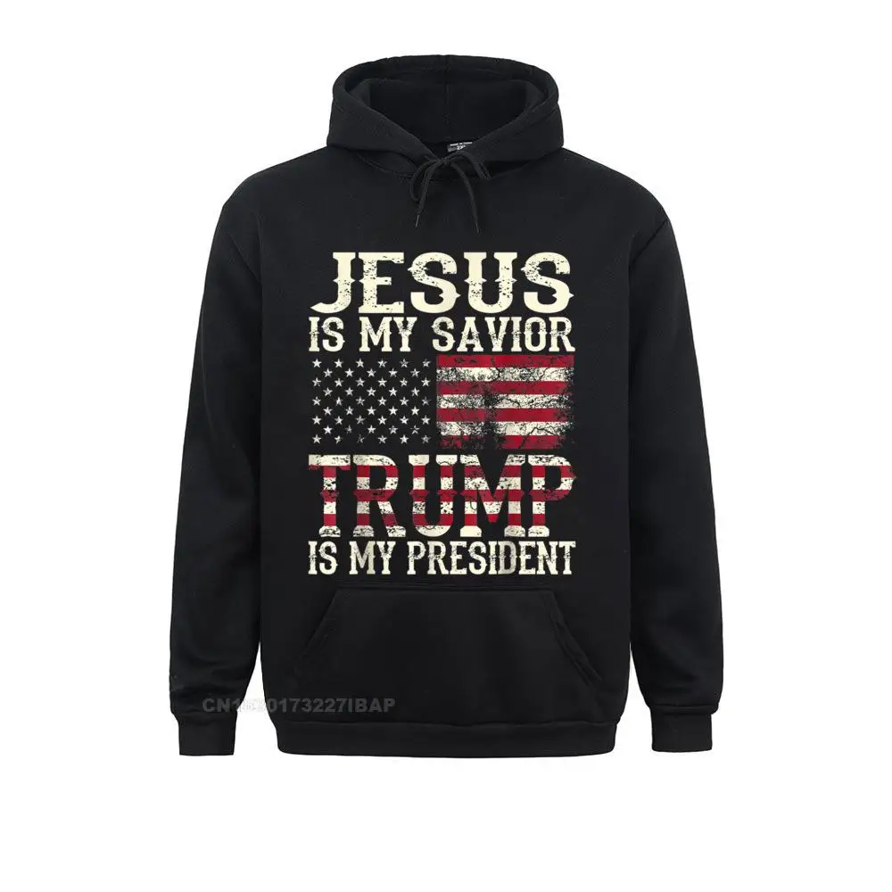 Пуловер с капюшоном с изображением Иисуса-мой спаситель Трампа-мой президент с американским флагом, простые мужские толстовки с 3D-принтом, мультяшная одежда
