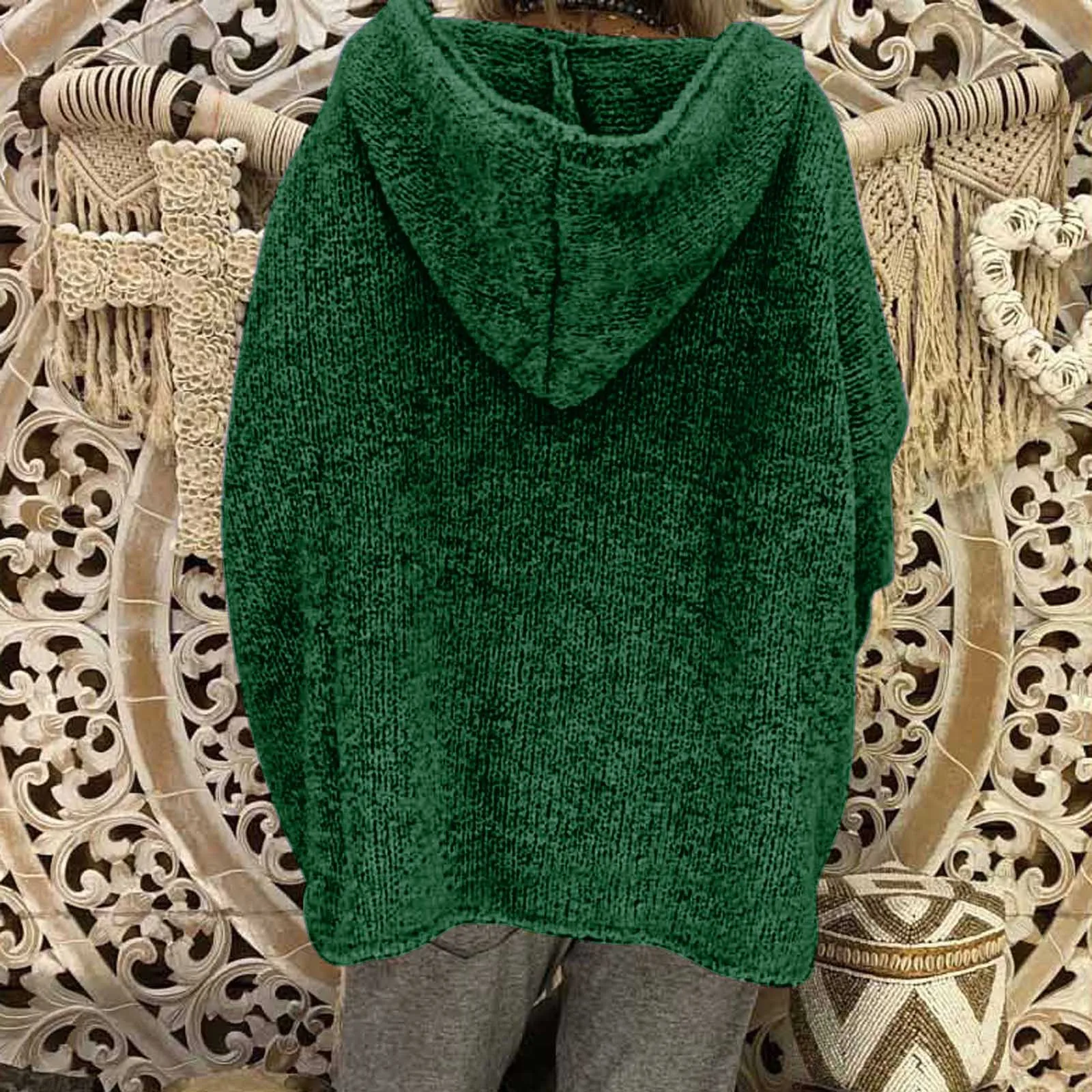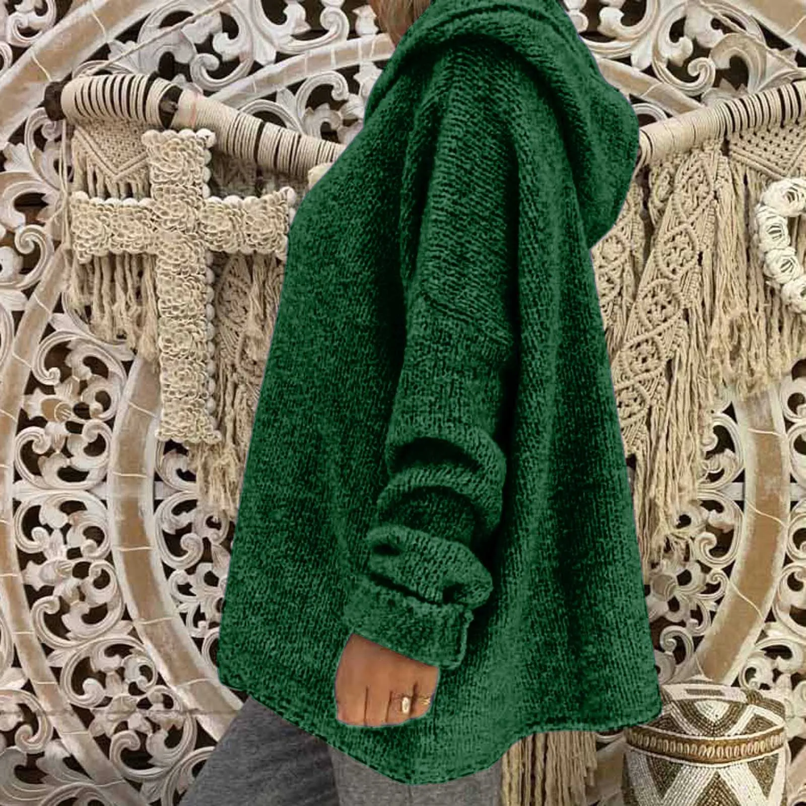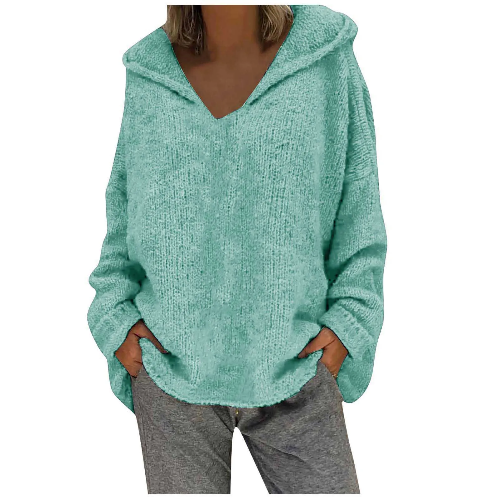 Женские винтажные свободные свитера большого размера, Однотонный Свитер с длинным рукавом и капюшоном, зимний Свитер с защитой от холода