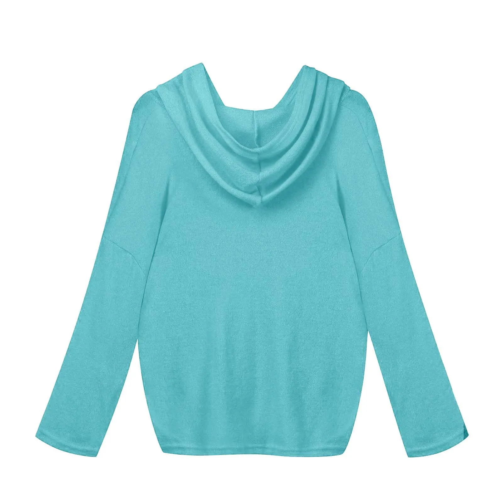 Женский модный свободный Однотонный свитер с капюшоном и длинными рукавами большого размера