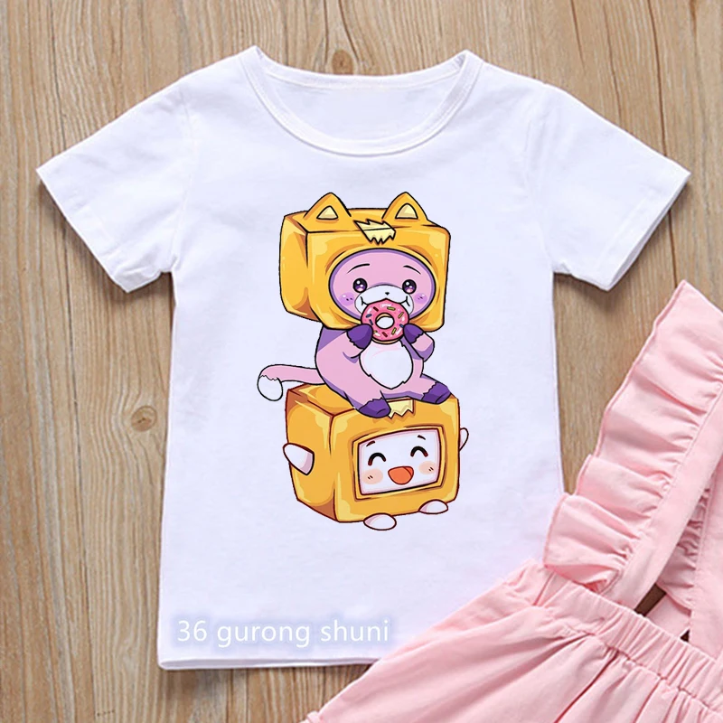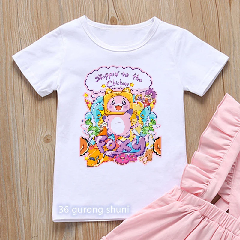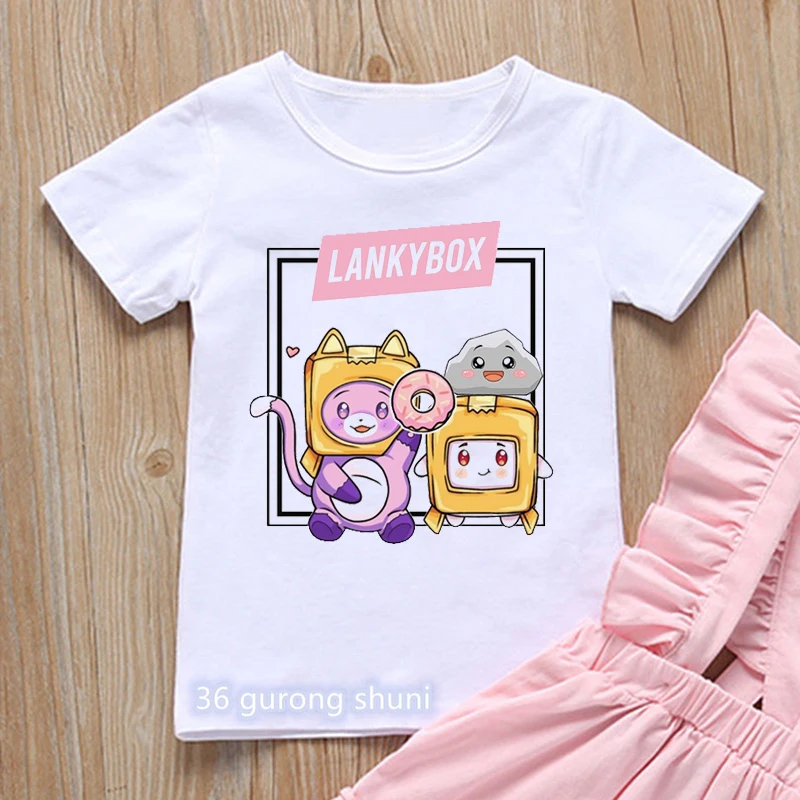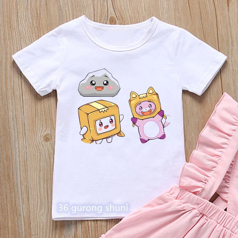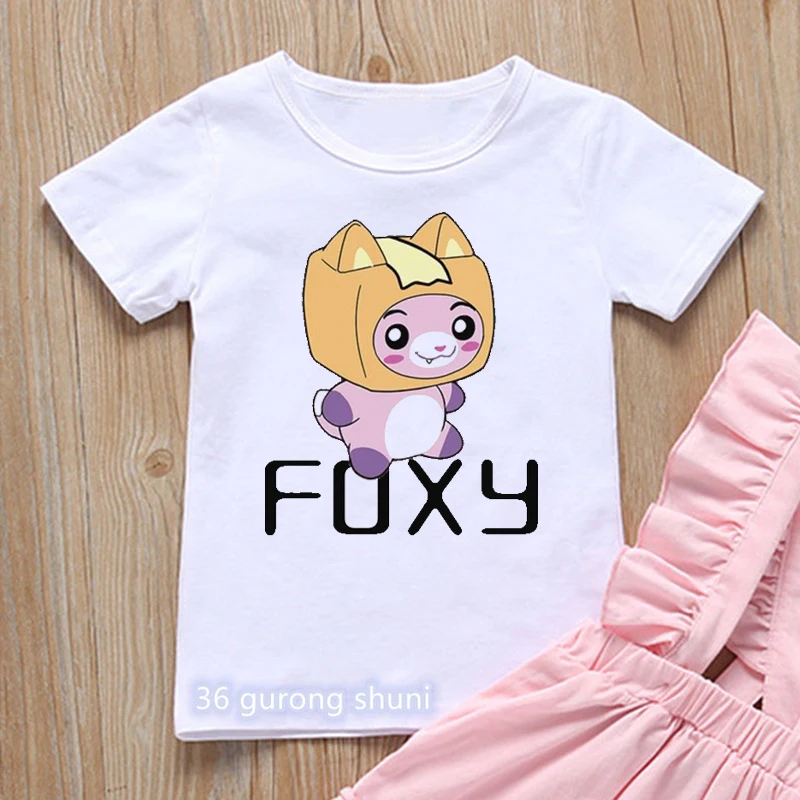 Забавная футболка Lankybox с мультяшным принтом, летние топы для девочекмальчиков, детская одежда, рубашка в стиле Харадзюку, футболка Рокки и Фокси, Прямая поставка