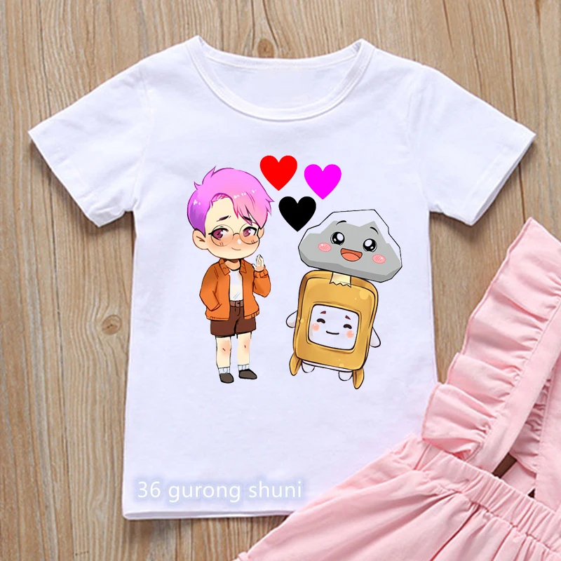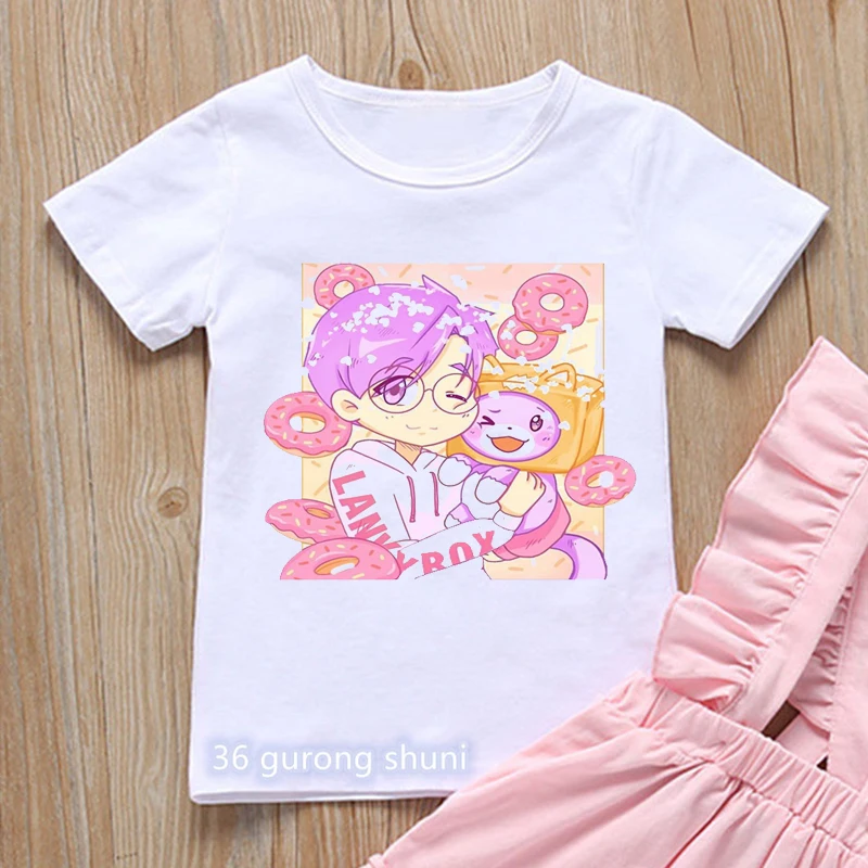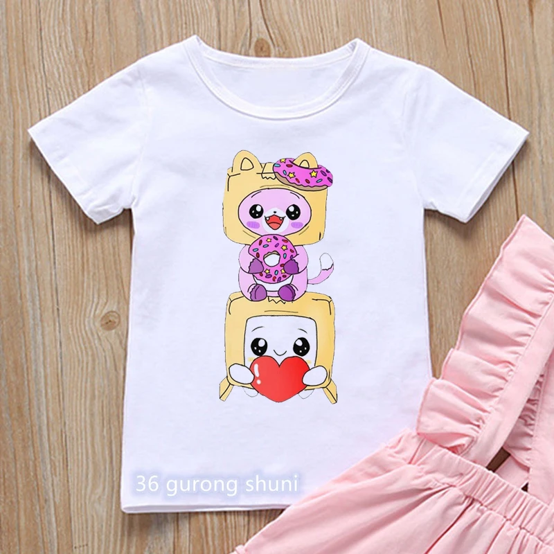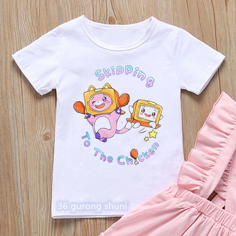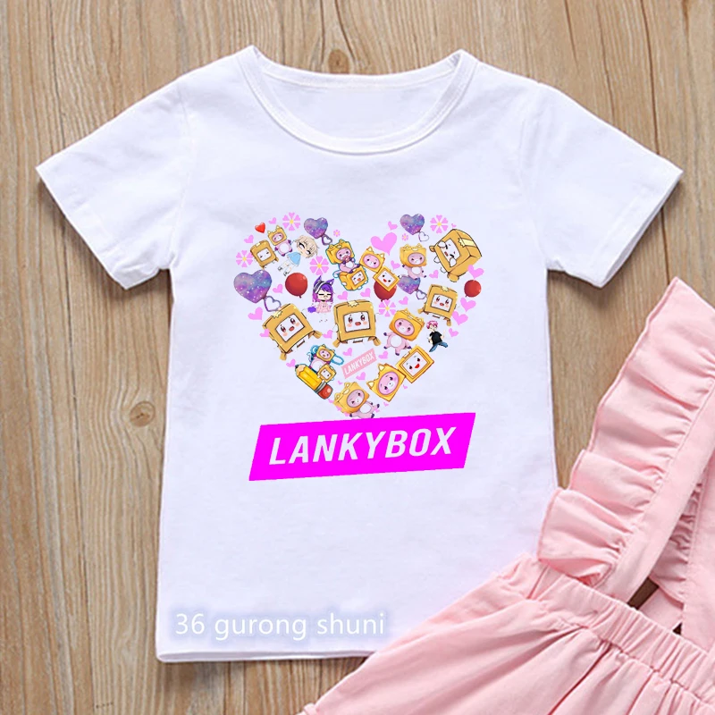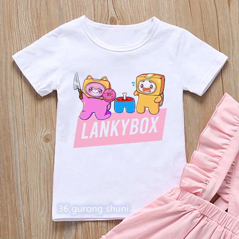 Забавная футболка Lankybox с мультяшным принтом, летние топы для девочекмальчиков, детская одежда, рубашка в стиле Харадзюку, футболка Рокки и Фокси, Прямая поставка