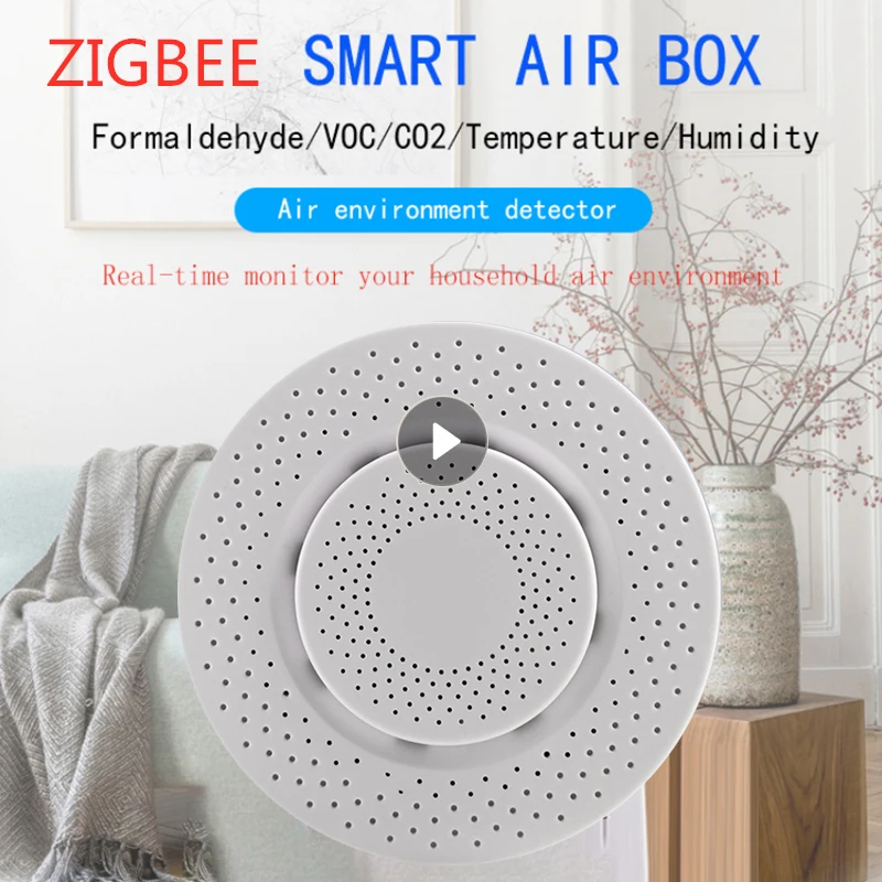 Смарт-датчик СО2 Zigbee Tuya для воздушной коробки, автоматический датчик качества воздуха с сигнализацией, детектор формальдегида, летучих соединений, температуры и влажности воздуха