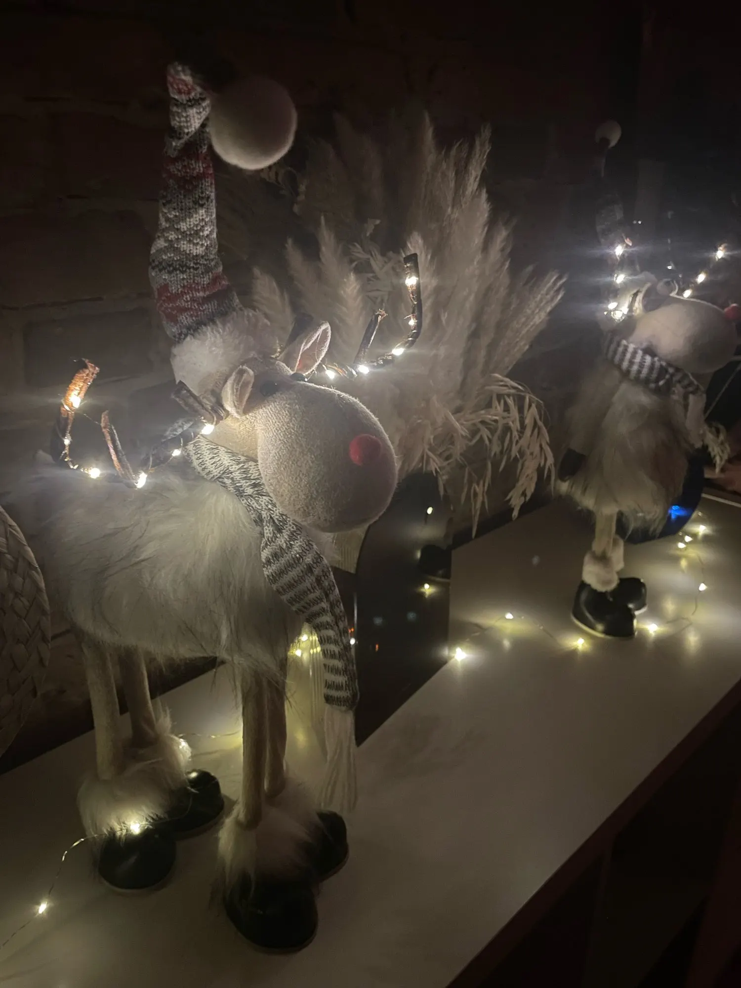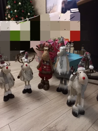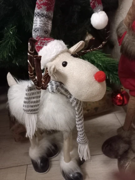 олени прикольные,понравились ,но 1 звезду снимаю за глаза :на фото у вас на белых шариках черные бусины(на четырех ножках олень),по факту у этого оленя просто вклеены черные бусины.у остальных оленей всё совпадает.почему с этим так сделали не понятно.