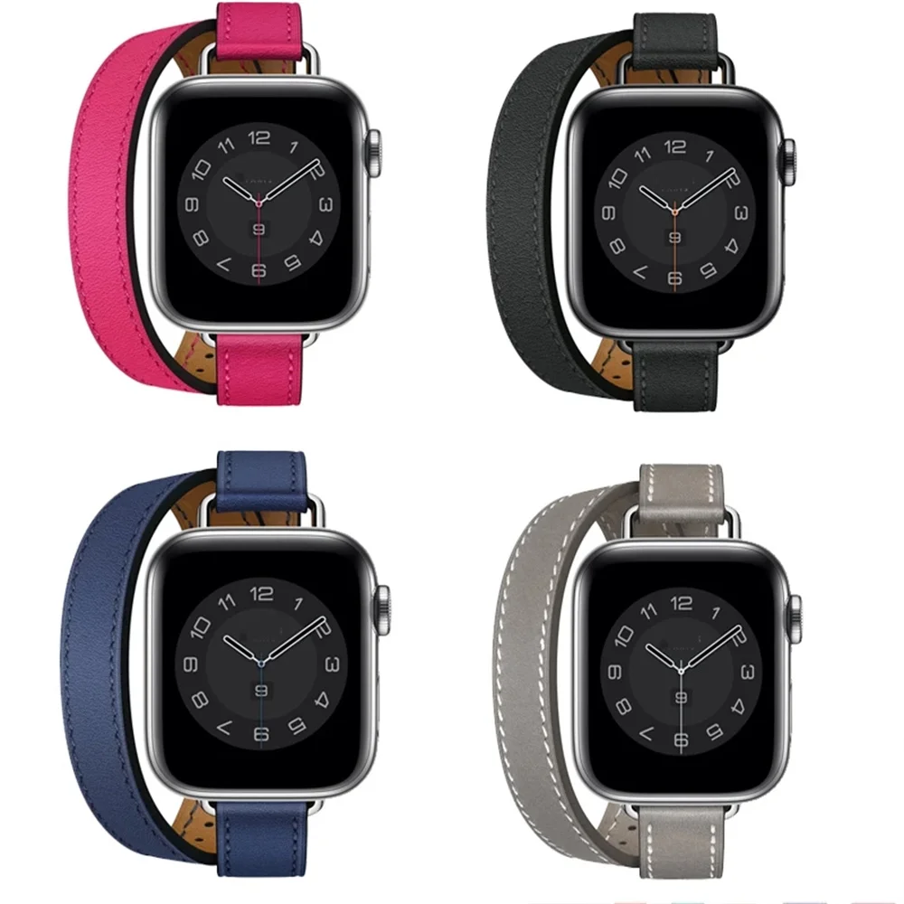 Двойной ремешок для Apple Watch 7 Band 41 мм 45 мм Series 6 SE 5 4 40 мм 44 мм, тонкий кожаный браслет для iWatch 3 38 мм 42 мм Correa