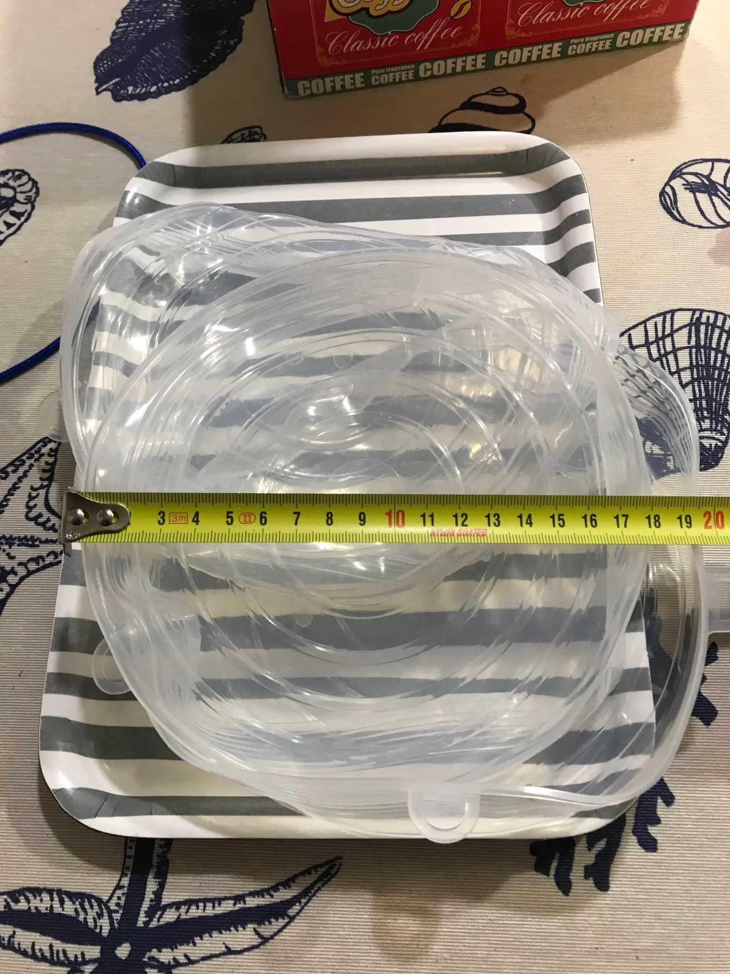 Ну, сначала я купил партию синих и розовых цветов разных размеров, но из-за использования один сломался, поэтому я решил купить только тот, который я использую больше всего... Самый большой диаметр почти 20 см. Мое удивление состоит в том, что те, что на единицах, намного толще, чем те, что на лотах разных размеров. Первые я купил их более года назад... И они намного тоньше, и это двойные толстые, и, поскольку я даю им много безопасного использования, они прослужат более года или двух. На фото вы видите синий, который куплен по лоту, который тоньше белого, который куплен свободными единицами. Белый-двойной толщины, цвет-синий, розовый, который у меня есть.