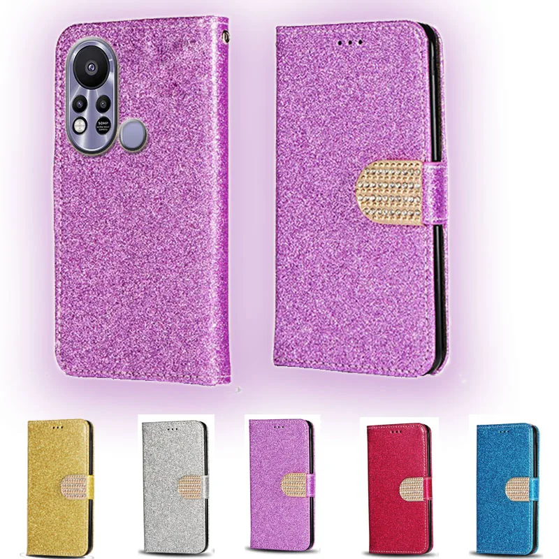 Роскошный блестящий кожаный чехол-книжка с бриллиантами для телефона Infinix Hot 11 S 11 S с отделением для карт
