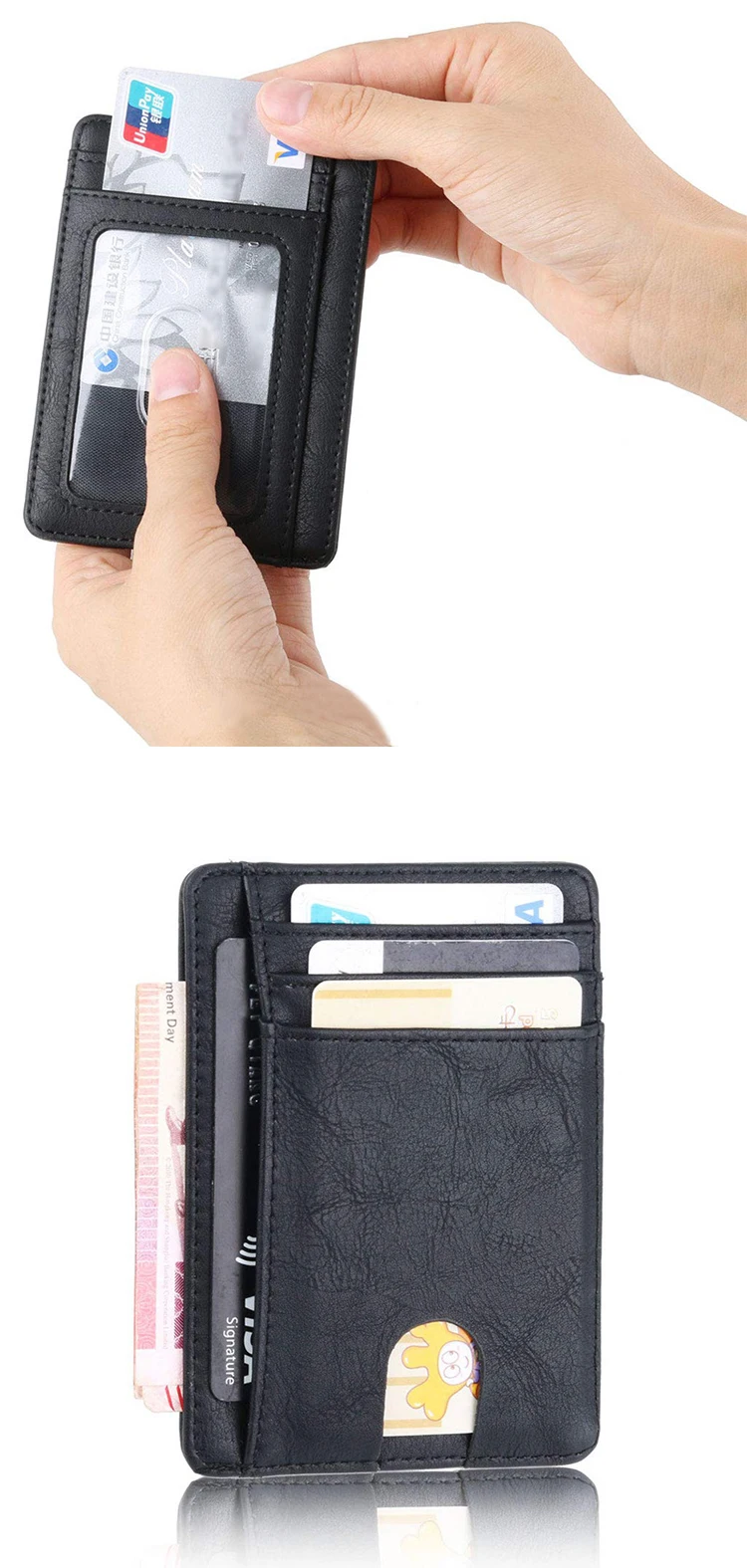 Тонкий кожаный кошелек с рчид-блокировкой, держатель для кредитных ...