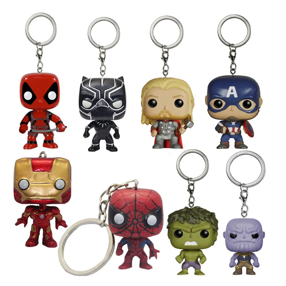 Marvel Мстители финал танос Дэдпул Тор Человек-паук брелок виниловая экшн-фигурка игрушки для детей Рождественский подарок
