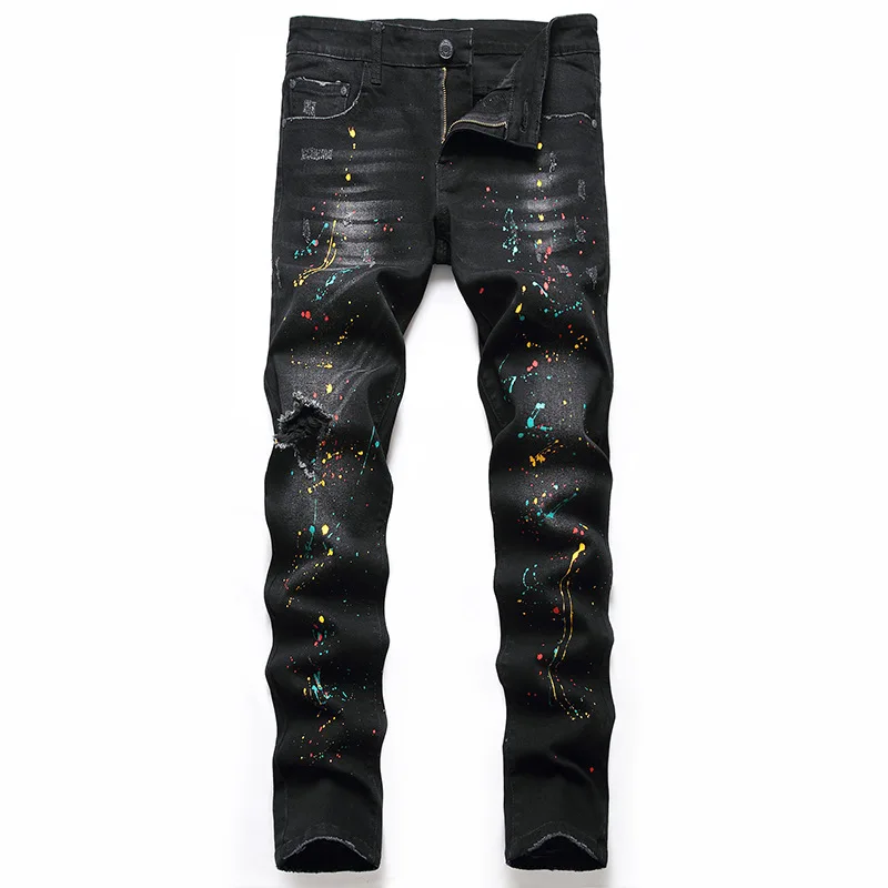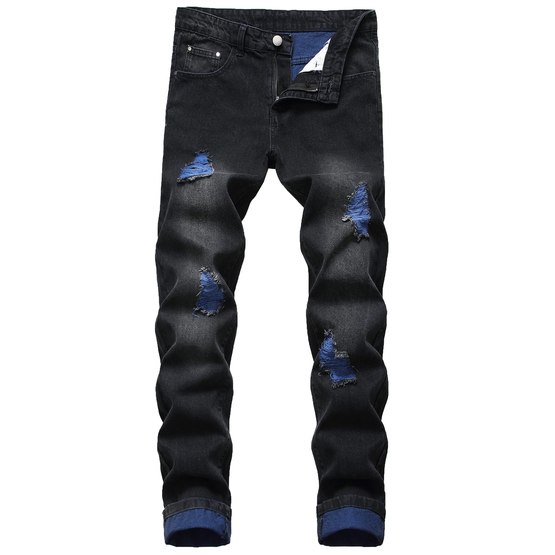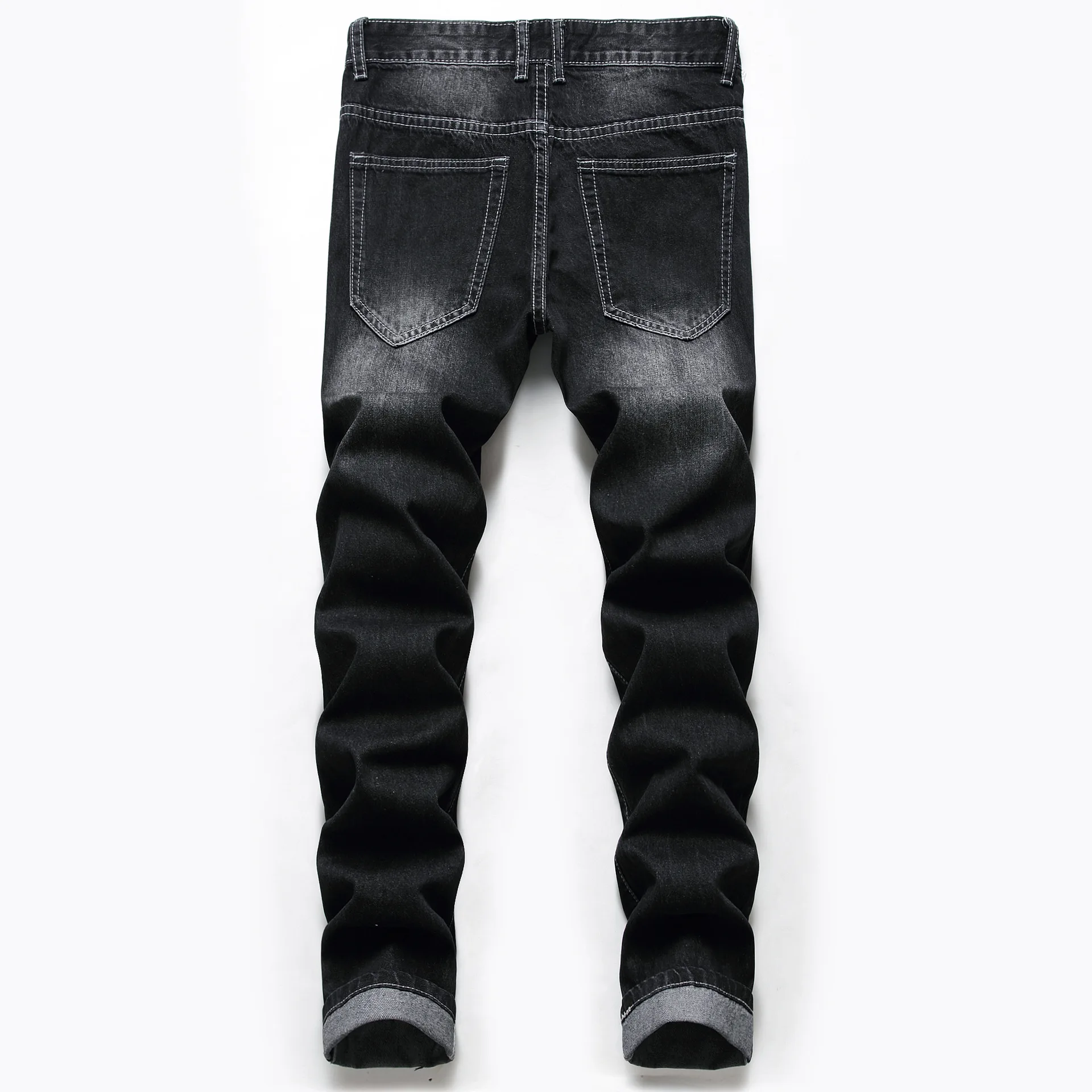 2022Высококачественные мужские повседневные Черные джинсы, узкие Прямые рваные байкерские джинсы, осенние джинсы для мужчин, мужские джинсовые штаны размера плюс 42