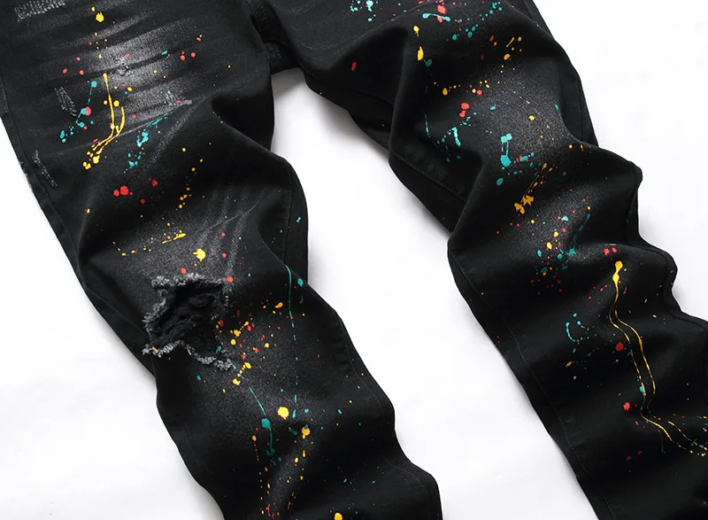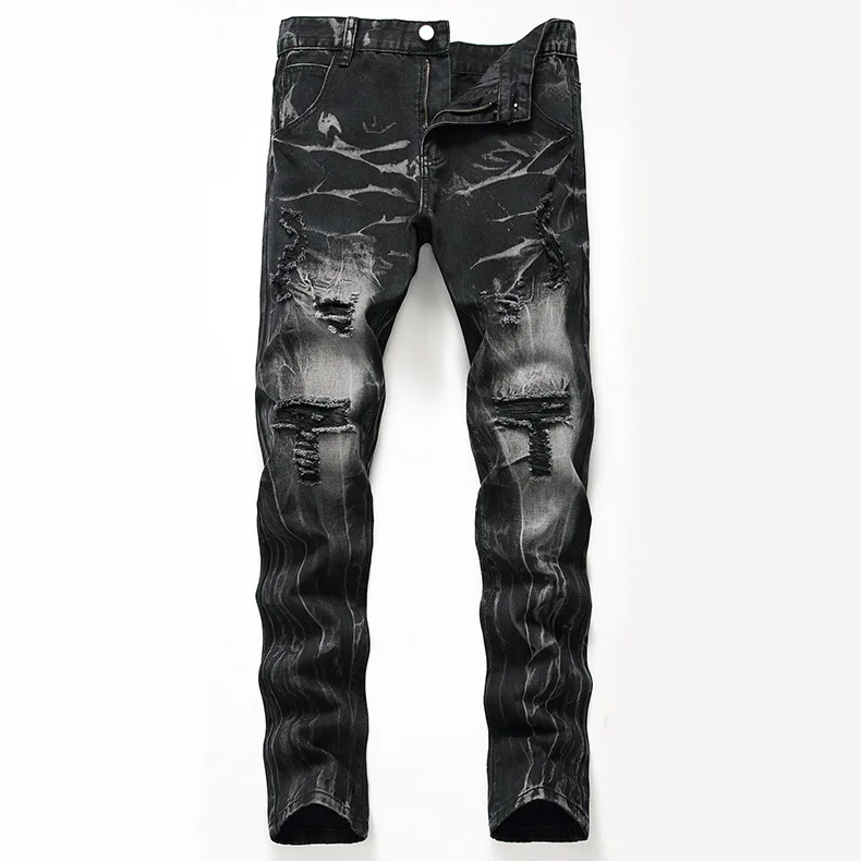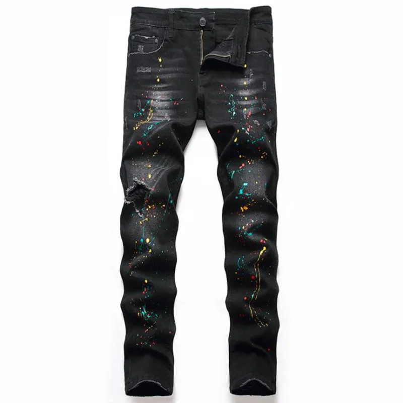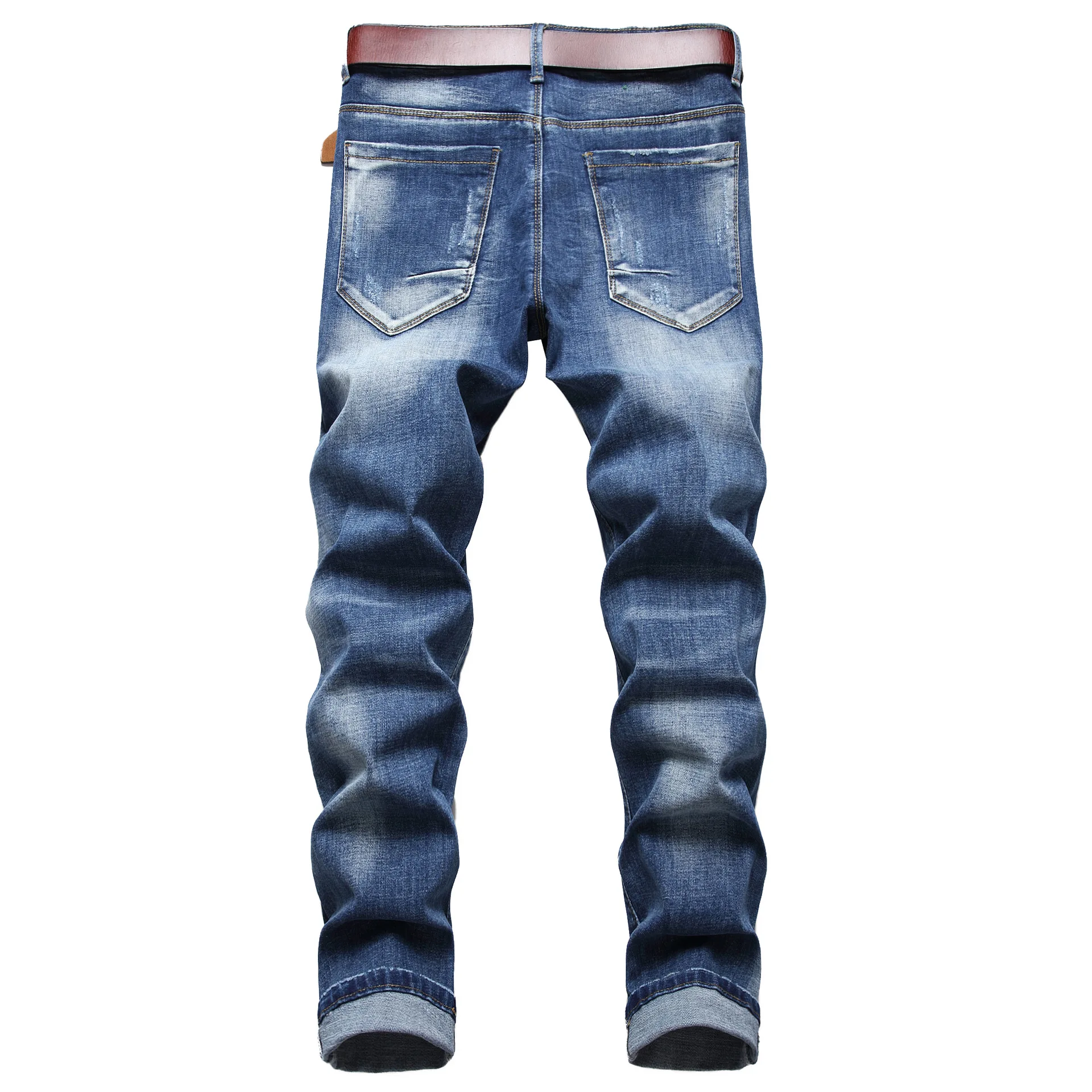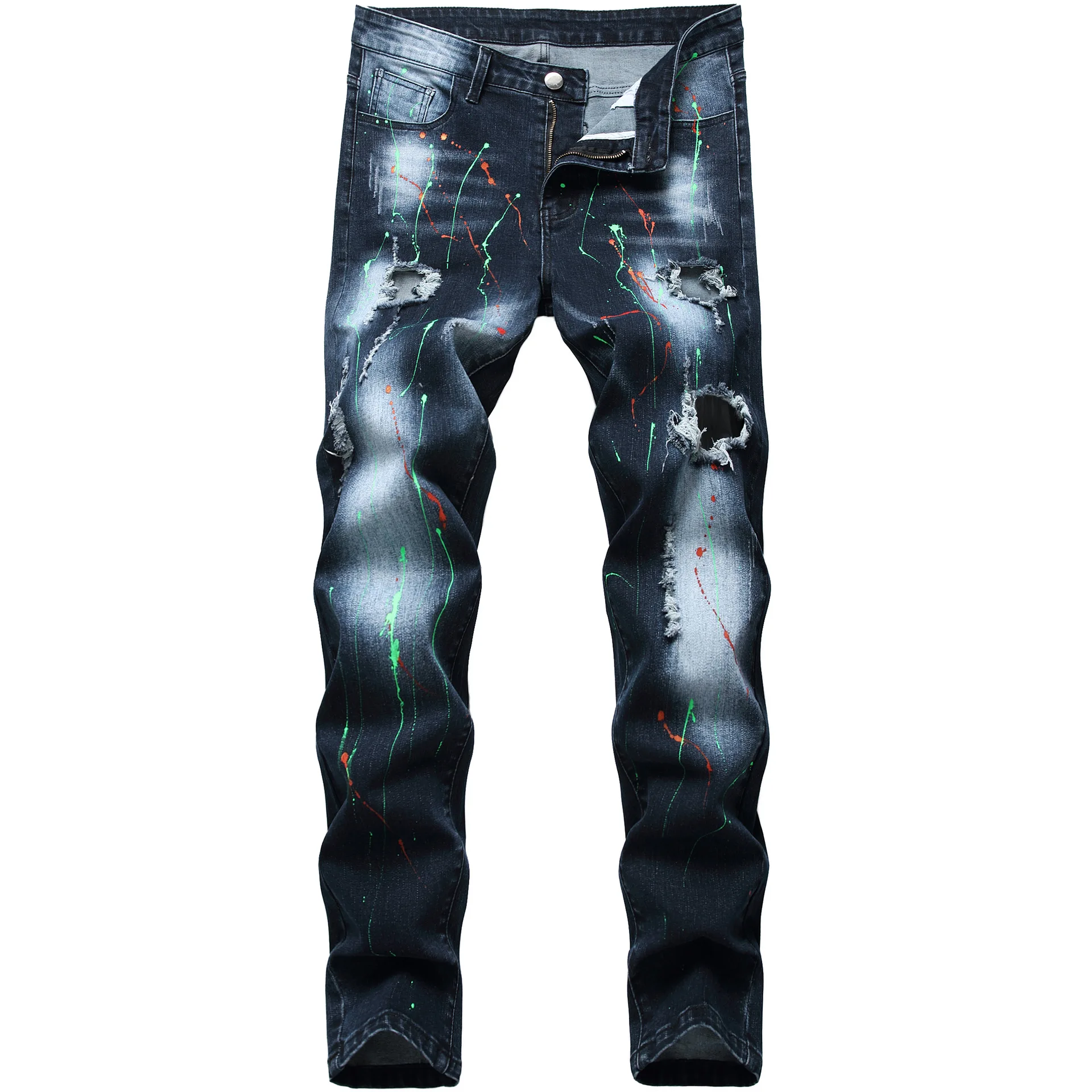 2022Высококачественные мужские повседневные Черные джинсы, узкие Прямые рваные байкерские джинсы, осенние джинсы для мужчин, мужские джинсовые штаны размера плюс 42