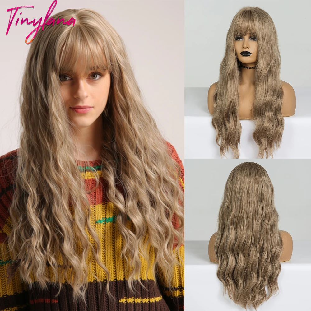 Длинные волнистые синтетические парики с челкой, светло-золотистые ...