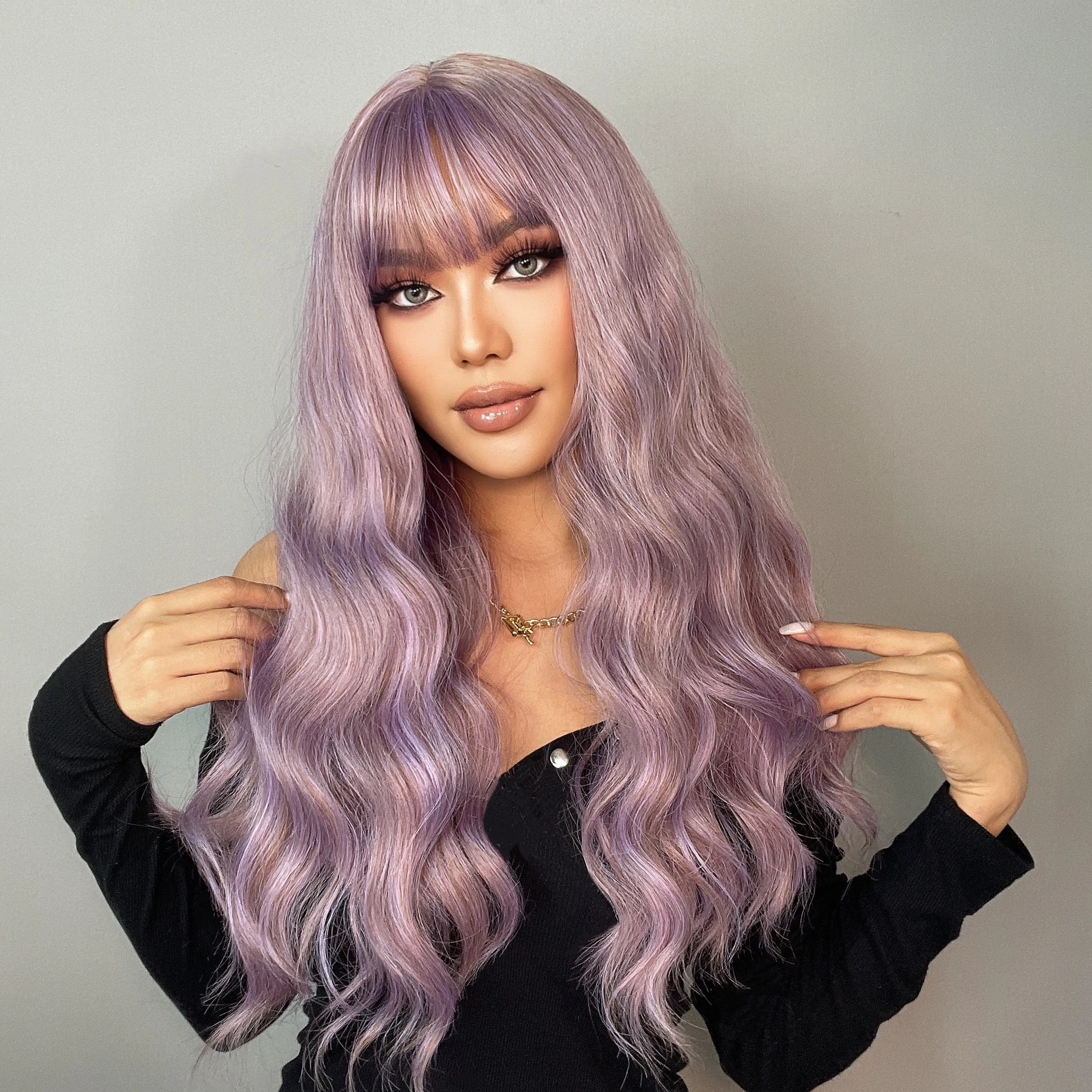 Длинные волнистые синтетические парики GEMMA с челкой, натуральные ...