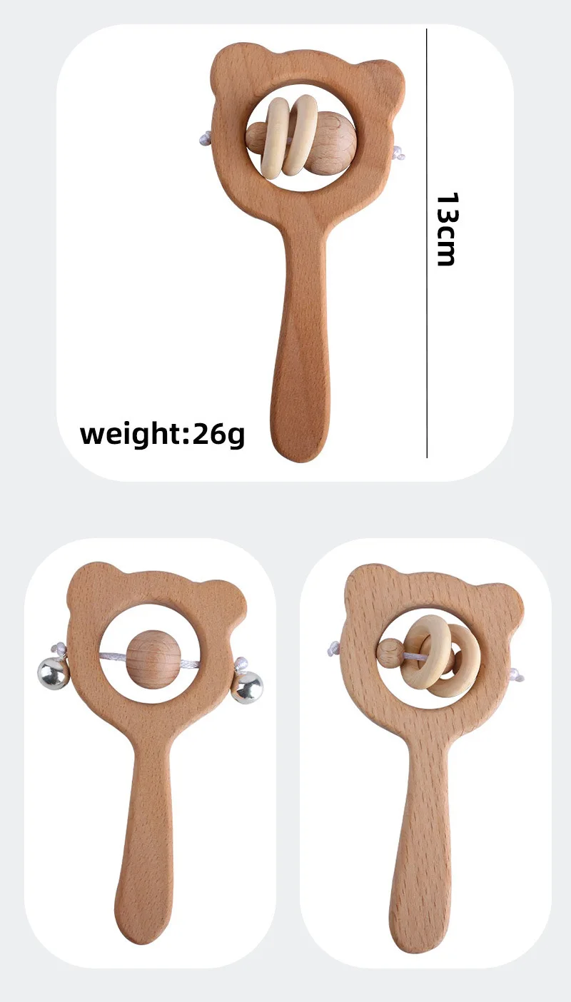 3 шт., деревянные погремушки-медвежонки из бука