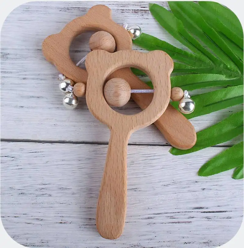 TYRY.HU деревянная погремушка с буковым медведем для прорезывания зубов, деревянное кольцо, детские погремушки, игровой зал, коляска Монтессори, игрушка, развивающие игрушки