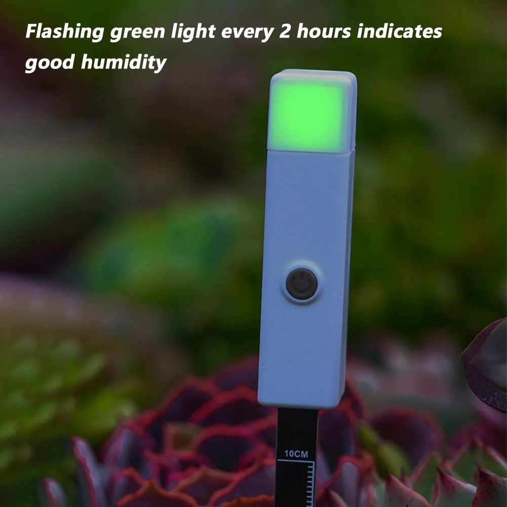 Светильник индикатора: зеленый светильник, мигающий каждые 2 часа, указывает на хорошую влажность, оранжевый светильник, мигающий каждые 6 секунд, указывает на среднюю влажность и воду, красный светильник мигает каждые 6 секунд, что означает, что почва сухая и полива требуется немедленно.