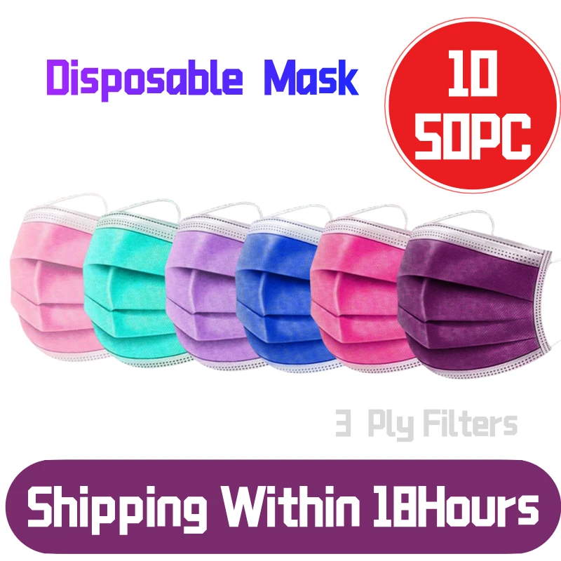 10 шт. одноразовые нетканые 3-слойный фильтр Маска Цвет: фиолетовый...