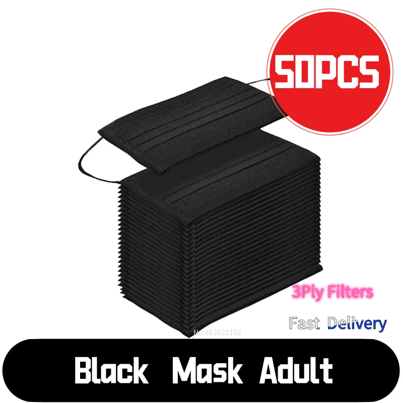 50 шт., черная маска для женщин и мужчин, 3 слоя