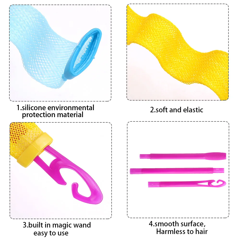 Описание:1. Эти бигуди могут легко свернуть и скрутить волосы и легко создать модный стиль.2. Легко использовать, чтобы свернуть желаемую прическу быстро и эффективно, создавая смесь локонов и волн.