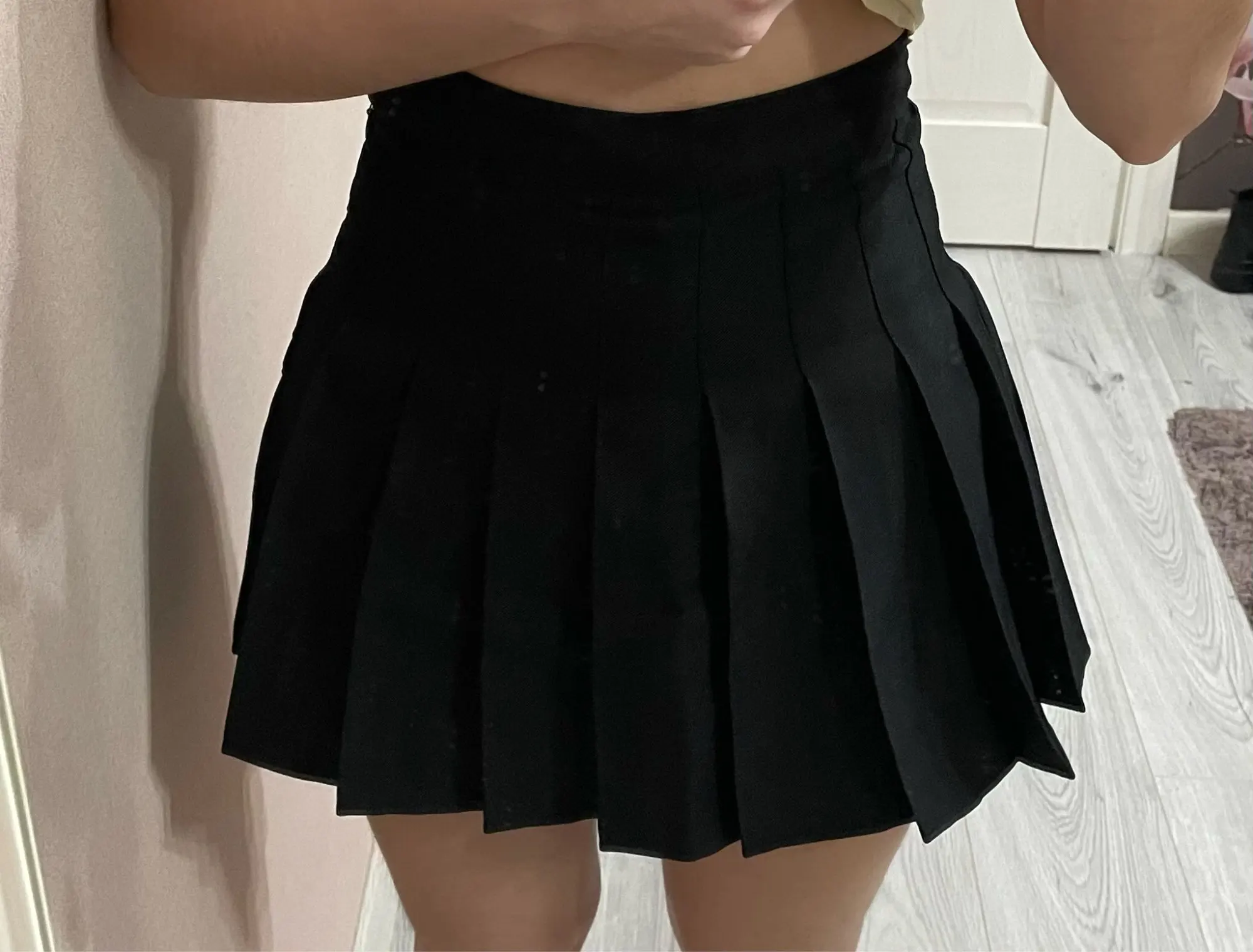 юбочка подошла как раз, немного короткая, но её спасают шортики ткань приятная, вообщем все понравилось^^