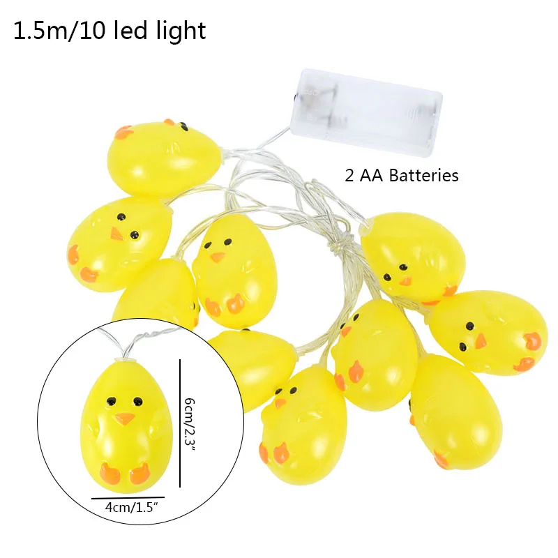 Светодиодная гирлянда с пасхальными жёлтыми цыплями, 1,5 м