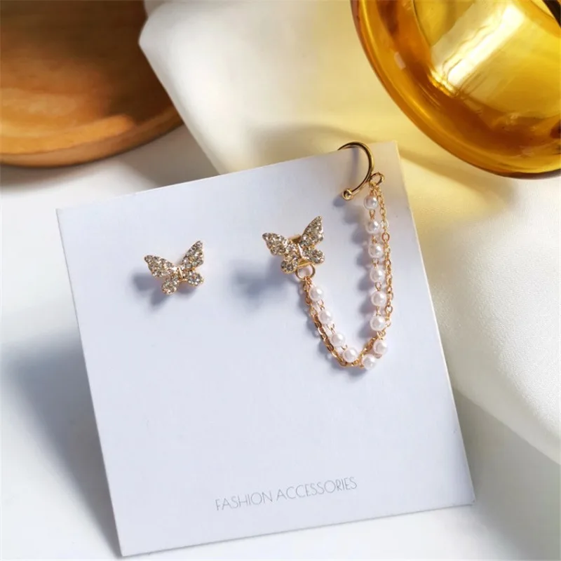 Корейские элегантные милые серьги-гвоздики Стразы с бабочкой для женщин и девушек модная металлическая цепочка серьги Ювелирные изделия Подарки