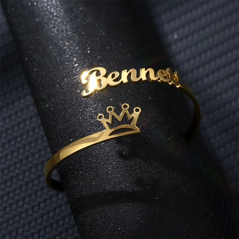 Индивидуальный персонализированный браслет из нержавеющей стали с золотым именем, браслеты для женщин, индивидуальный Модный Браслет-манжета с короной, рождественские украшения