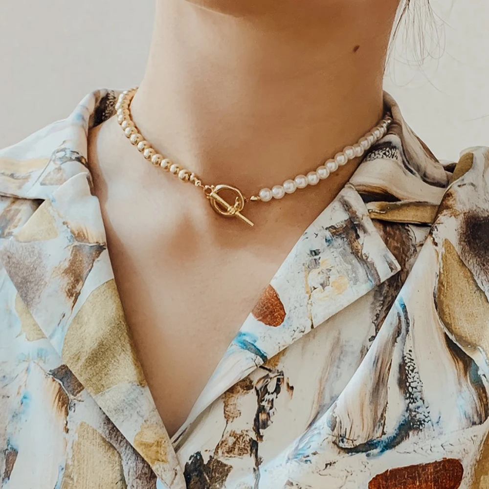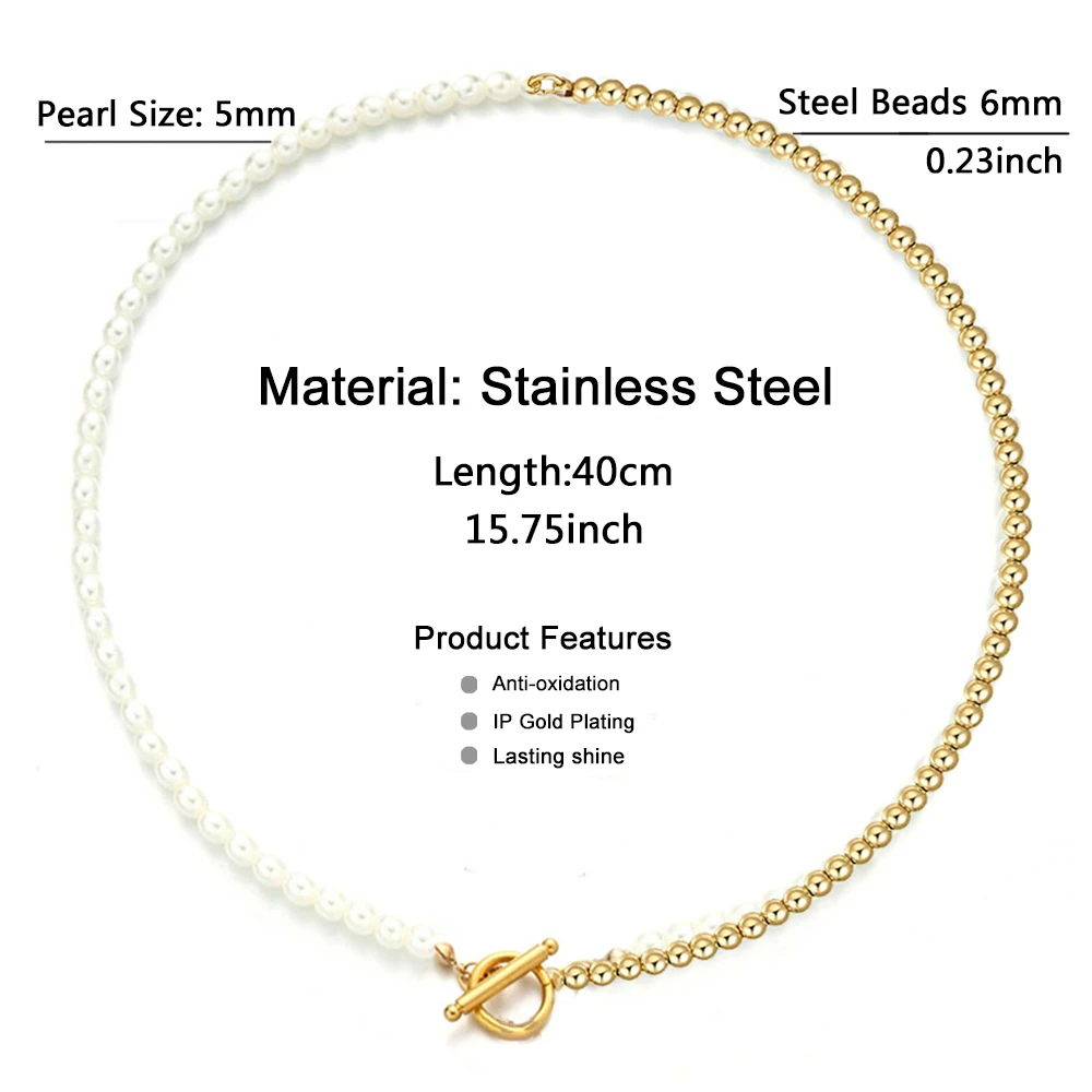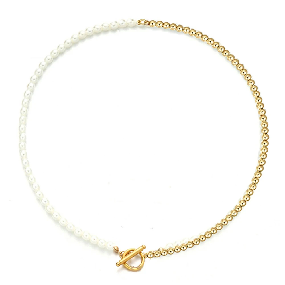 Ожерелье-чокер из нержавеющей стали золотистого цвета с имитацией жемчуга для женщин, колье с пряжкой, новое модное ювелирное изделие
