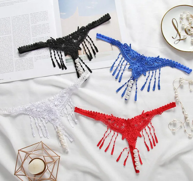 Новые Сексуальные женские трусики с вышивкой с кисточками и открытой пилкой, тонкие трусики с жемчужным принтом, ажурные эластичные женские трусики E62