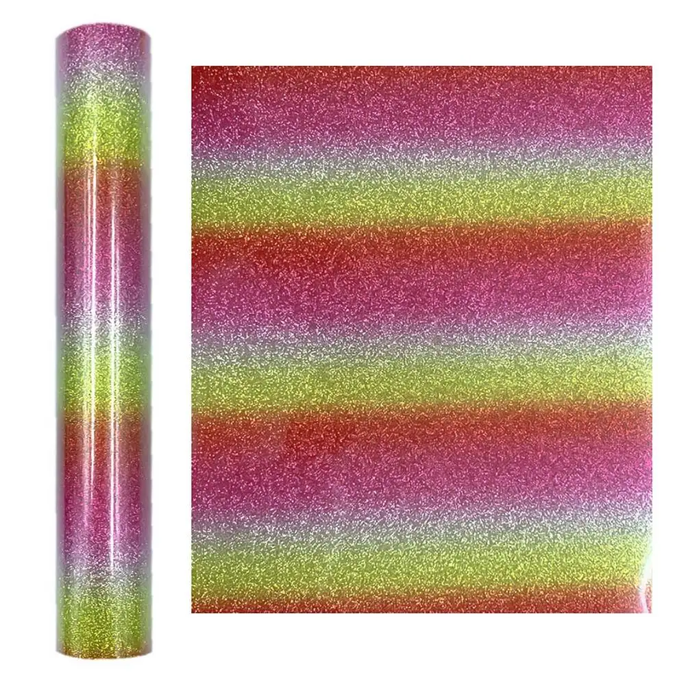 Блестящий винил для теплопередачи, Радужный градиент, теплопередача, винил, самоклеящийся виниловый рулон, легко режущая виниловая переводная лента Ro