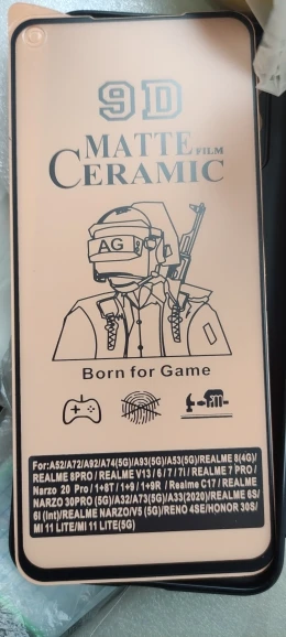 Толстая пленка больше похожая на стекло, это что-то универсальное под диагональ экрана так как отверстие под камеру немного в стороне, хотя если честно оно вообще не надо, так и остальные габариты чуть меньше чем надо, в итоге черная рамка буквально на мм перекрывает обзор, матовая немного снижает четкость экрана, но скользит палец прям супер и никакие следы на экране не остаются.