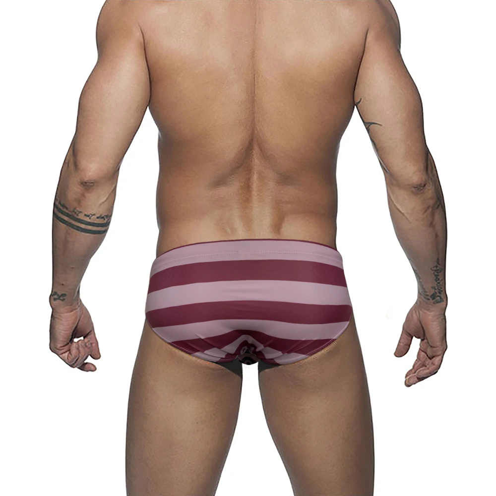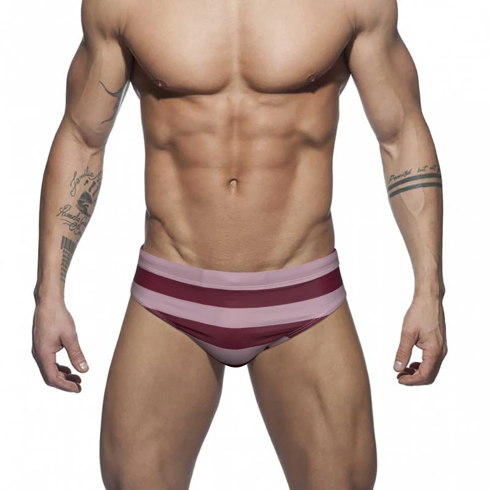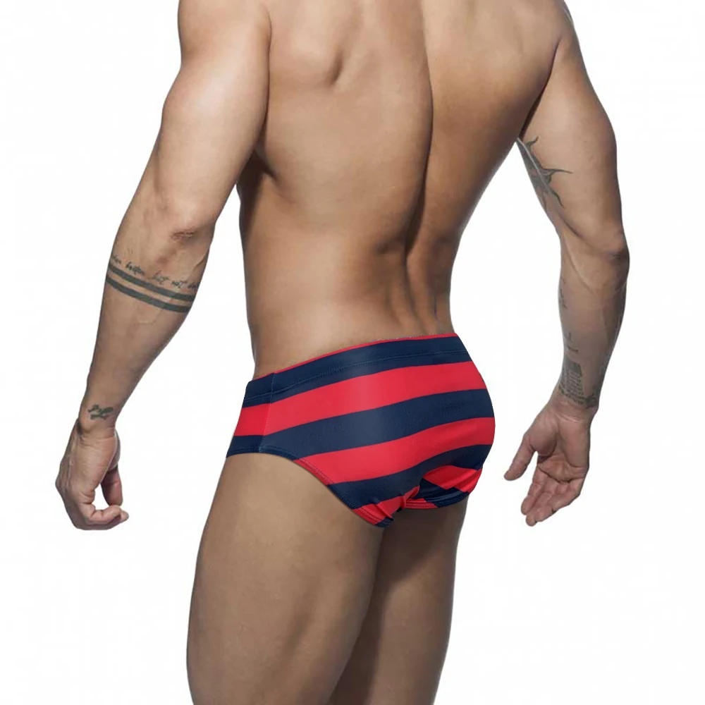 Купальник полосатый мужской с заниженной талией, пикантный пляжный купальный костюм, модные спортивные трусы для серфинга, плавки
