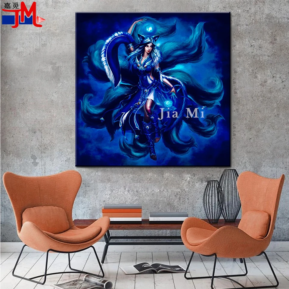 Фея 5d diy Алмазная картина синяя с девятью хвостами лиса красота Алмазная мозаика фантазия аниме рукоделие вышивка крестиком Декор