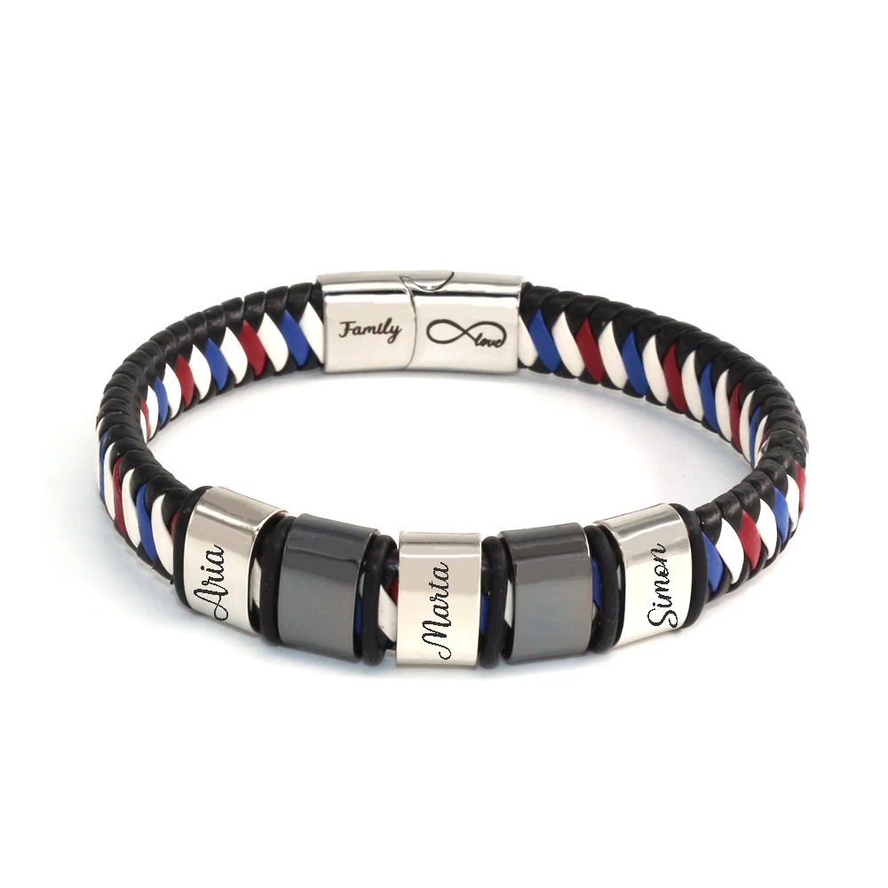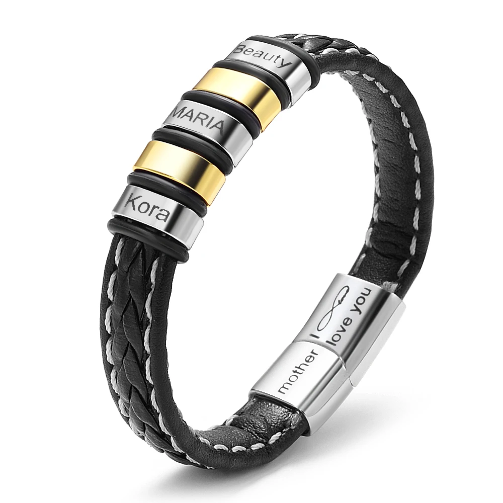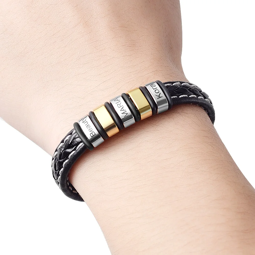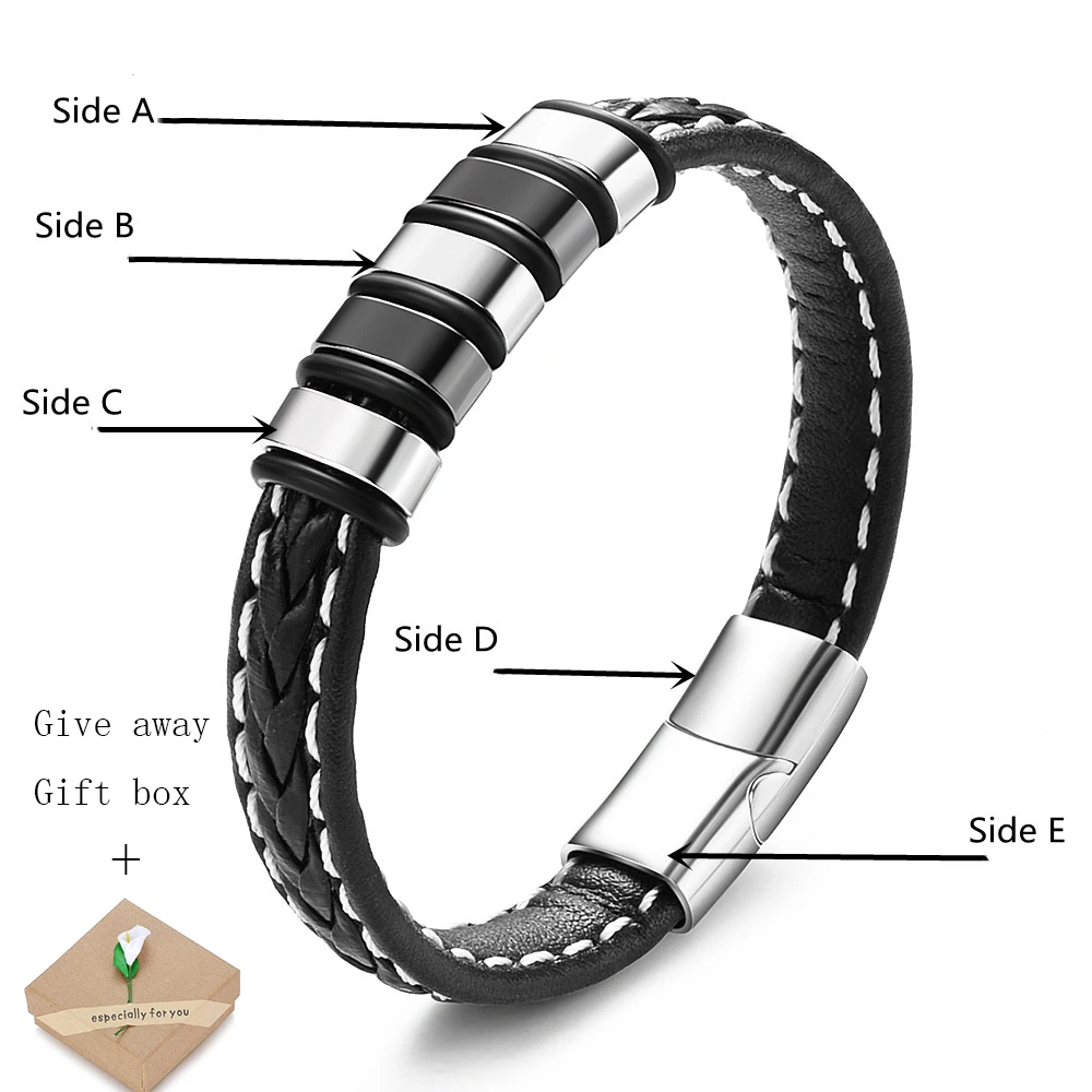 Пользовательские Выгравированные имя Дата персонализированные ювелирные изделия браслет черный кожаный браслет для мужчин магнит кнопка браслеты папа семья подарки