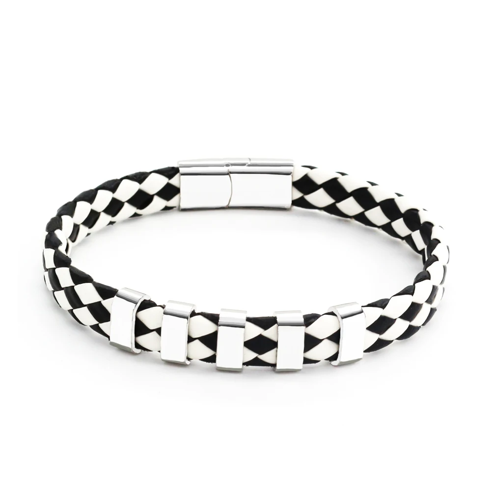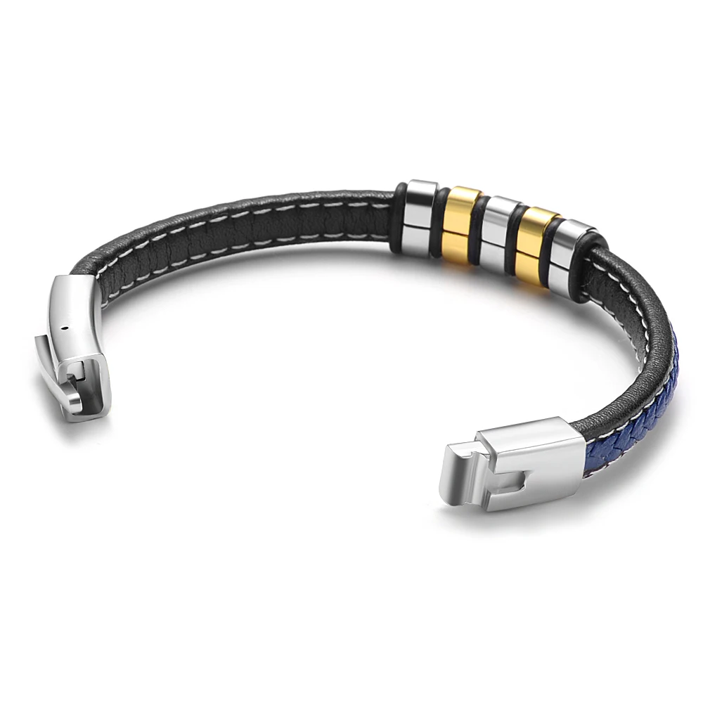 Материал: кожа + нержавеющая стальЦвет: серебристый + черный/серебристый + золотойРазмер: 18 см/19 см/20 см/21 см/22 смПосылка: 1 браслет + 1 подарочная коробкаЕсли вам нужно другое количество бусин, пожалуйста, свяжитесь со службой поддержки клиентов