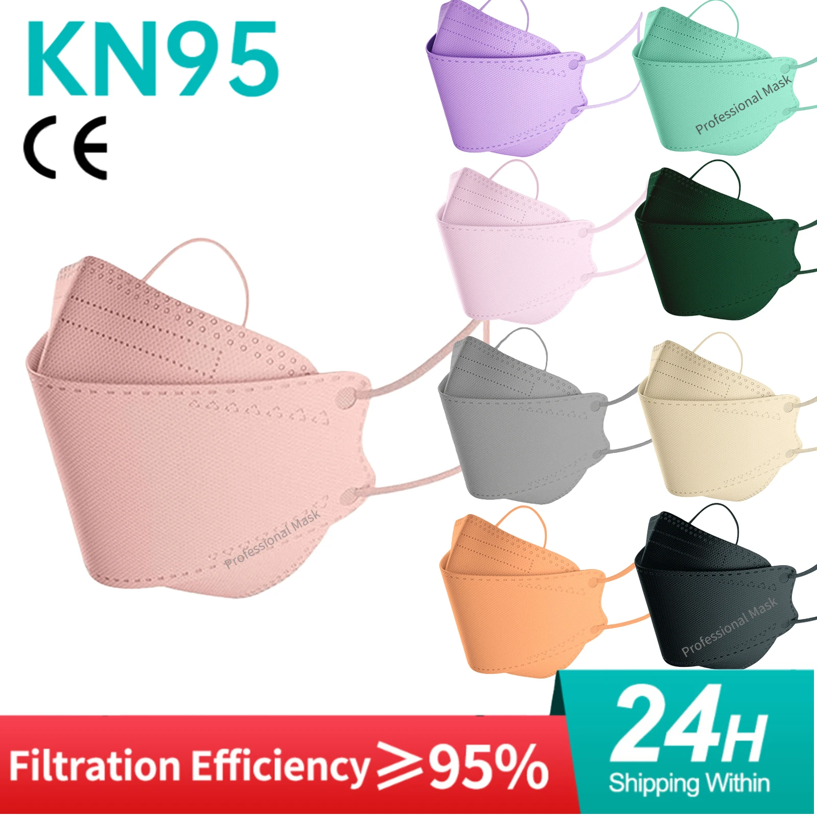 Маска для лица KN95 FFP2 для взрослых, 4 слоя фильтра, 1-100 шт.