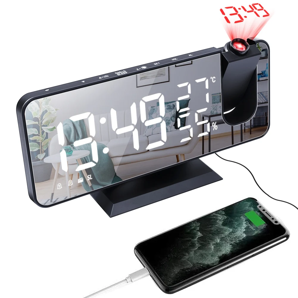 7,3-дюймовый проекционный цифровой двойной будильник для спальни Ра...