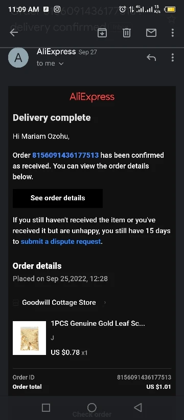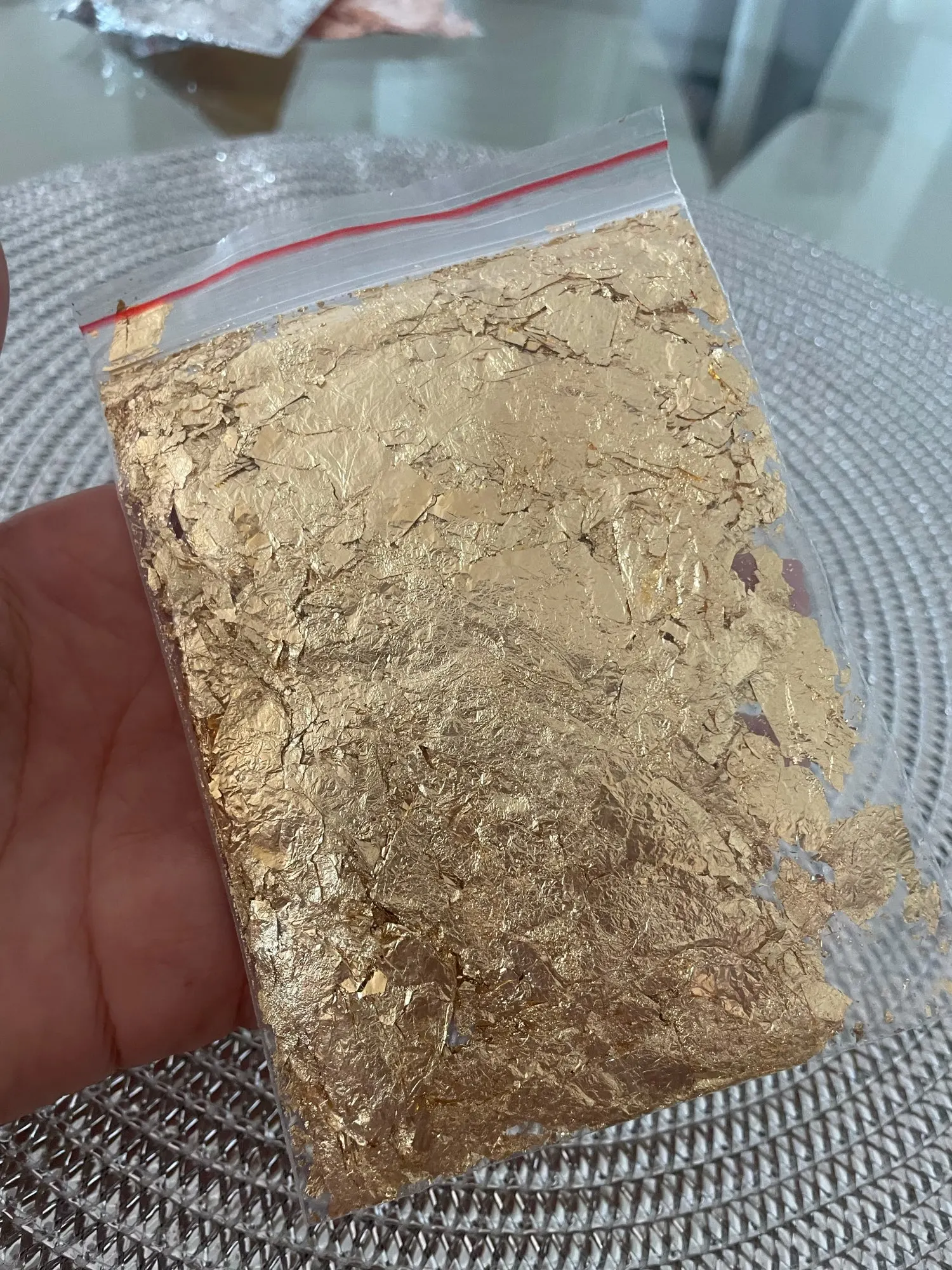 Быстрая доставка, менее 2 недель. Товар как на картинке соответствует описанию. Пакетик плотно заполнен золотом.