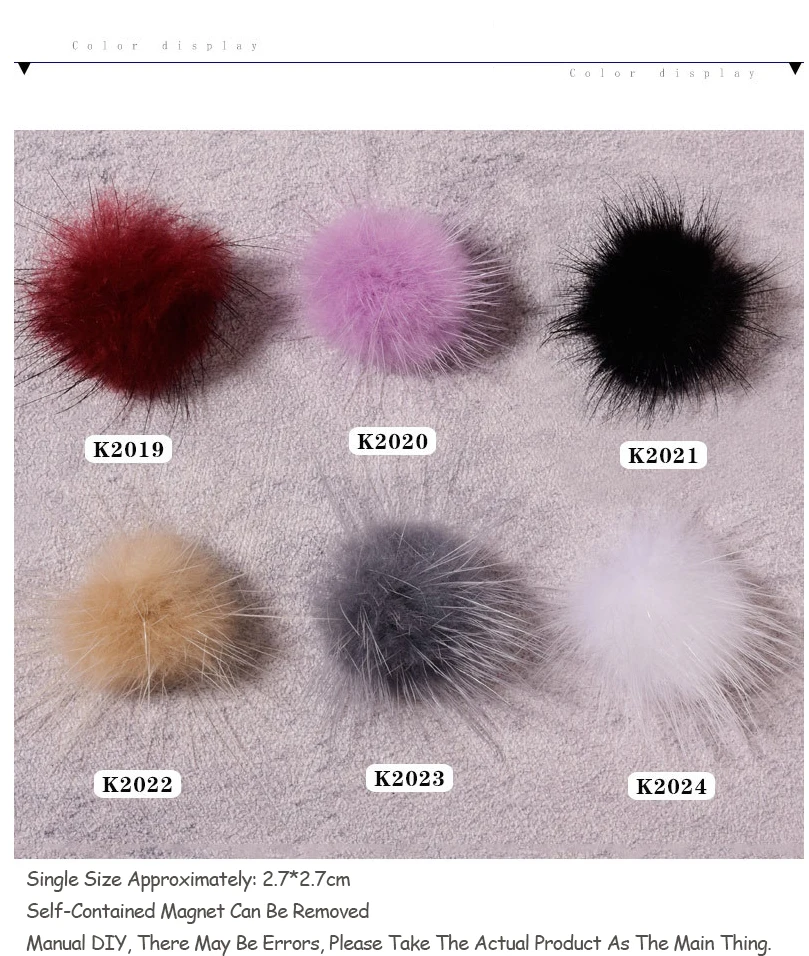 6 цветов, 27 мм, норковый помпон, магнит, пушистые ногти, 3D съемные серьги сделай сам, украшения, поделки, аксессуары, материалы для ювелирных изделий