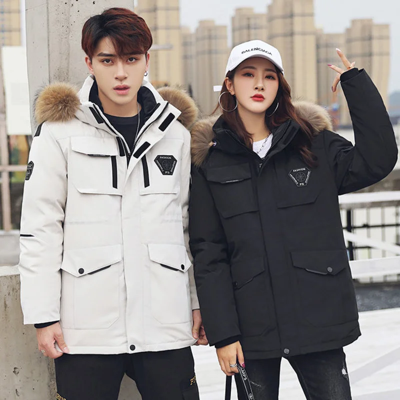 Парка мужская зимняя на белом утином пуху, с капюшоном и мехом, до-30 градусов