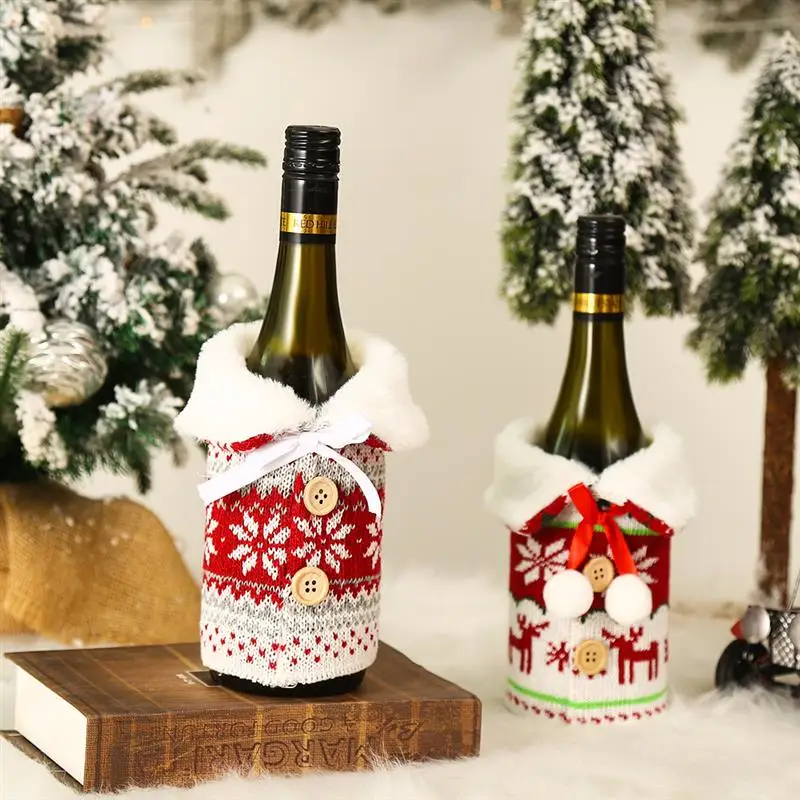 Рождественский чехол для винной бутылки, вязаный чехол для винной б...
