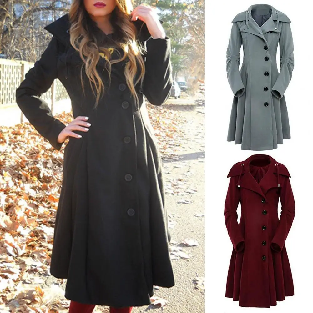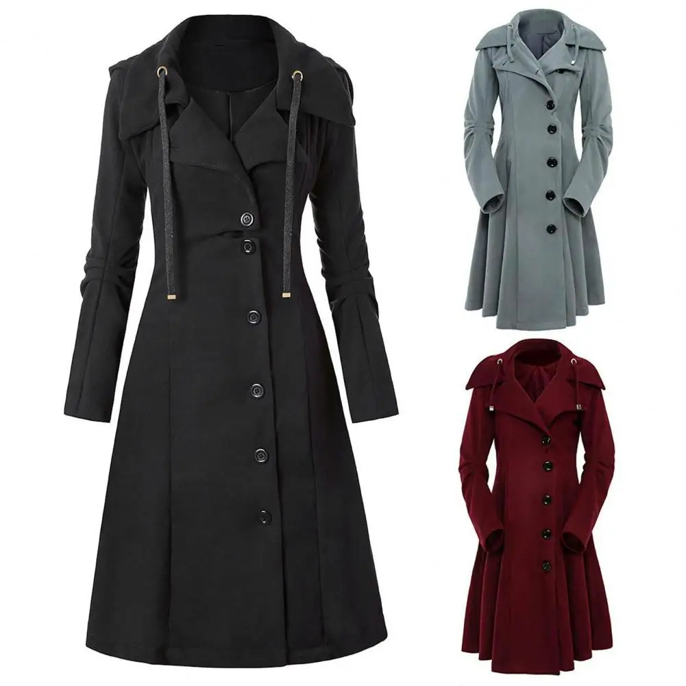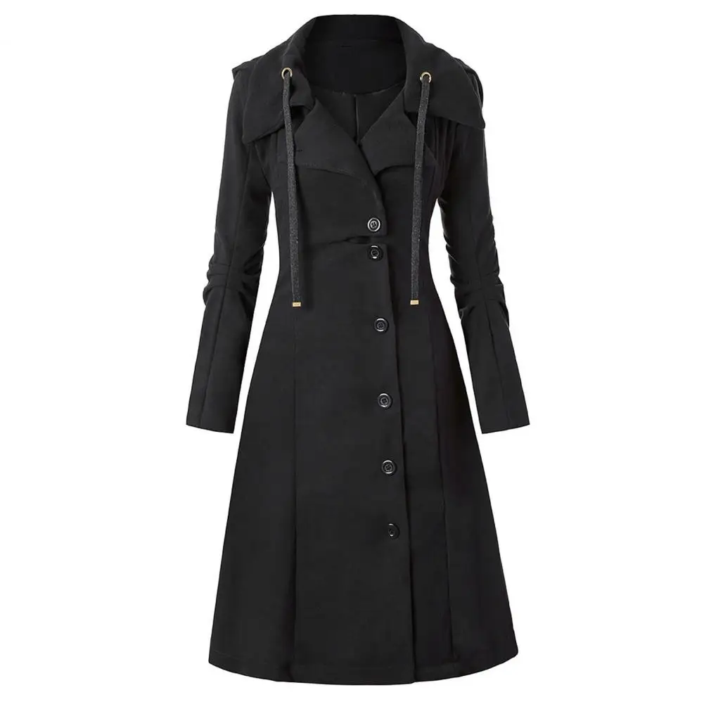 Женское асимметричное пальто на пуговицах, элегантное пальто с длинным рукавом, отложным воротником и плиссированным подолом с капюшоном, верхняя одежда