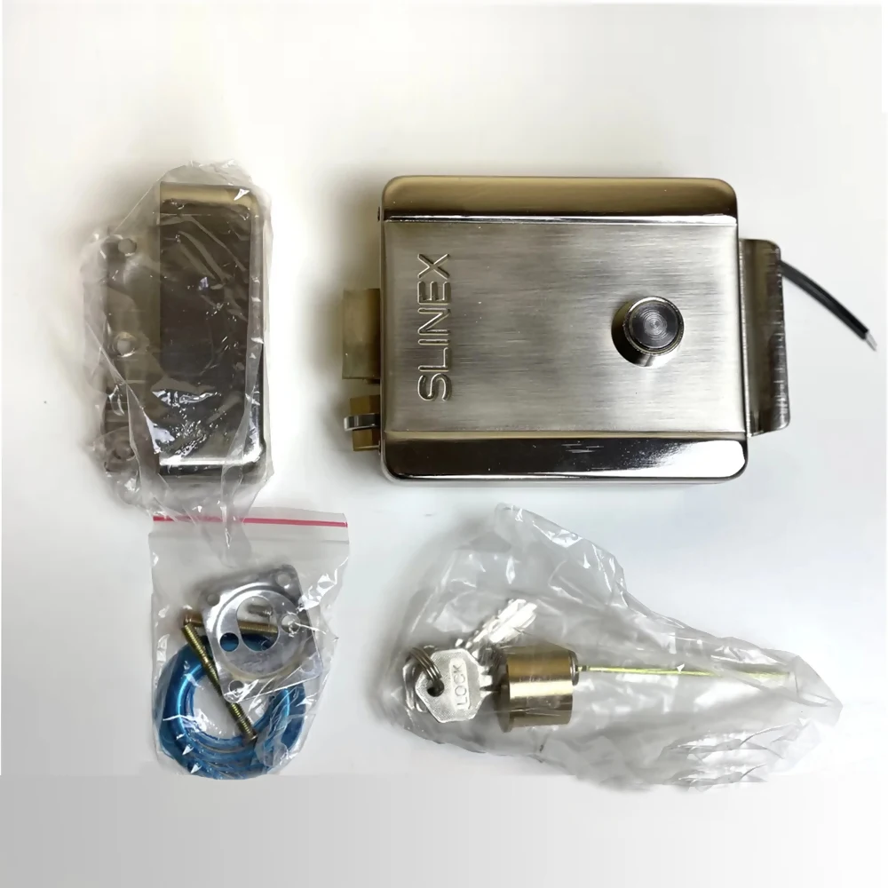Slinex EL-01 - электромеханический накладной замок, нормально закрытый, с одинарным цилиндром, механической кнопкой выхода на корпусе. Предназначен для запирания дверей, ворот, калиток с возможностью ручного или дистанционного открывания, в том числе для работы с аудиодомофонами, видеодомофонами, контроллерами СКУД (типа Z-5R и других) и кодонаборными панелями. Замок работает в импульсном режиме и открывается при кратковременной подаче напряжения. Вручную может быть открыт также кнопкой изнутри или ключом снаружи, при повороте ключа на небольшой угол. Замок является универсальным и может быть установлен на двери открывающиеся как во внутрь, так и наружу: